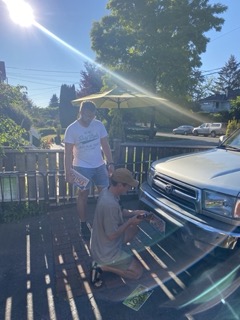 Der Tag der Wahrheit zum Zustand des Autos war gekommen. Nach dem Frühstück fuhren wir mit den Jungs nach Burnaby. Dort liegt die Werkstatt, wo die Jungs das Auto bereits zuvor schon einmal zur Inspektion und für kleine Reparaturen hingegeben hatten. Nachdem wir das Auto dort abgegeben hatten, gingen wir zu viert zum „Home Depot“, dem Äquivalent zum deutschen Baumarkt. Wir stöberten etwas herum und besorgten uns dort schon mal eine Axt und eine Säge. Im Anschluss ging es zurück zur Werkstatt. Das Ergebnis der Inspektion stand an. Abgesehen von kleineren Reparaturen, unter anderem auch in die Langlebigkeit zu erhöhen und um auf der sicheren Seite zu sein, wurde noch ein Ölwechsel gemacht und dann war das Auto wieder in bestem Zustand. Während wir auf die Reparatur gewartet haben, waren wir kurzerhand nach Downtown Vancouver gefahren und sind durch die Stadt gelaufen und haben uns dann gemütlich auf eine Parkbank beim Stanley Park, in der Nähe des schönen English Bay Strandes, gesetzt.