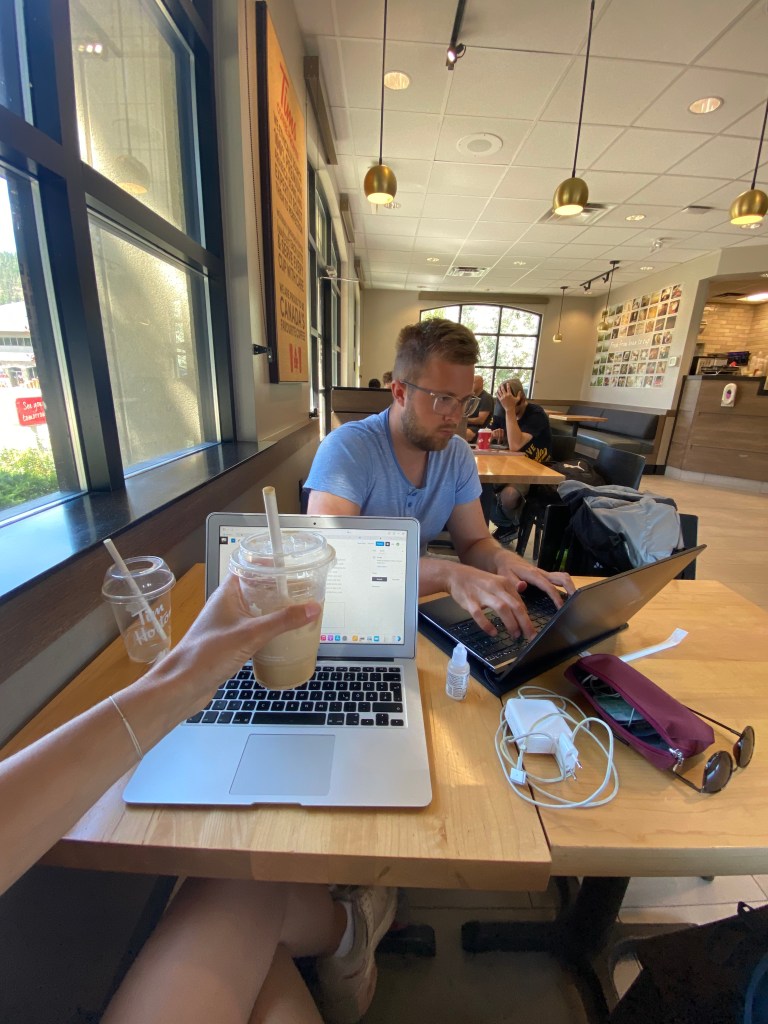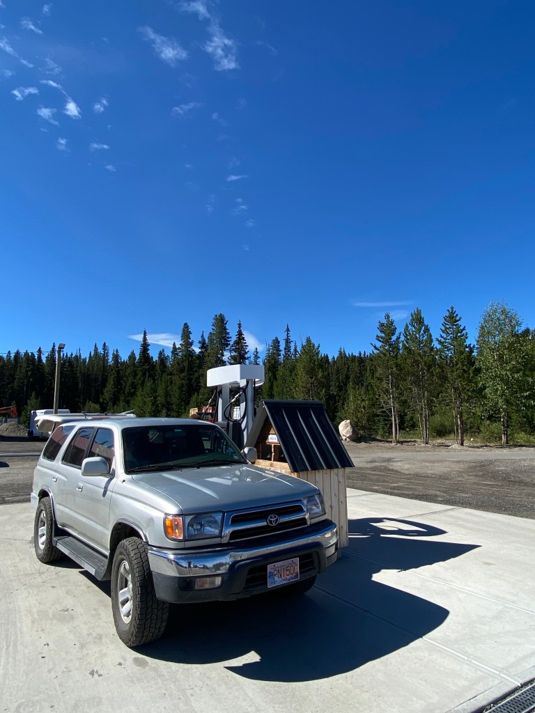 Von Samstag auf Sonntag erlebten wir nun unsere erste Nacht in unserem Auto. Campingplätze in Kanada sind genau wie überall auf der Welt recht teuer geworden. Für 30-40$ bekommt man einen Platz ohne alles, also ohne Dusche oder Strom oder WLAN. Somit haben wir uns entschieden, einen Platz ohne alles zu nehmen, allerdings ohne dafür etwas auszugeben. Mit der App iOverlander kann man auf der ganzen Welt nach Stellplätzen suchen. Hier beschreiben Reisende, wie der Platz aussieht, was er zu bieten hat oder warum man hier vielleicht nicht hinkommen sollte. Zuerst hatten wir einen Platz auf einem Parkplatz eines Supermarktes herausgesucht. Hier hätten wir WLAN gehabt, was für uns wichtig ist, da wir beide einen Berg Arbeit vor uns haben. Aber wirklich idyllisch ist ein Asphaltparkplatz in einer kanadischen Kleinstadt dann auch nicht. Also nutzten wir den Stopp, um unseren Van einmal komplett aus und wieder einzuräumen. Gefühlt ist das Chaos nach dem Sortieren größer als vorher… Aber wer mit Lichterketten, Kuscheldecken und Klamotten für alle Klimazonen reist, beansprucht eben doch ein bisschen mehr Platz als so ein Auto hergibt. Aber was solls, schnell die Tür zumachen und einfach nicht wieder öffnen, dann passt das schon 😉