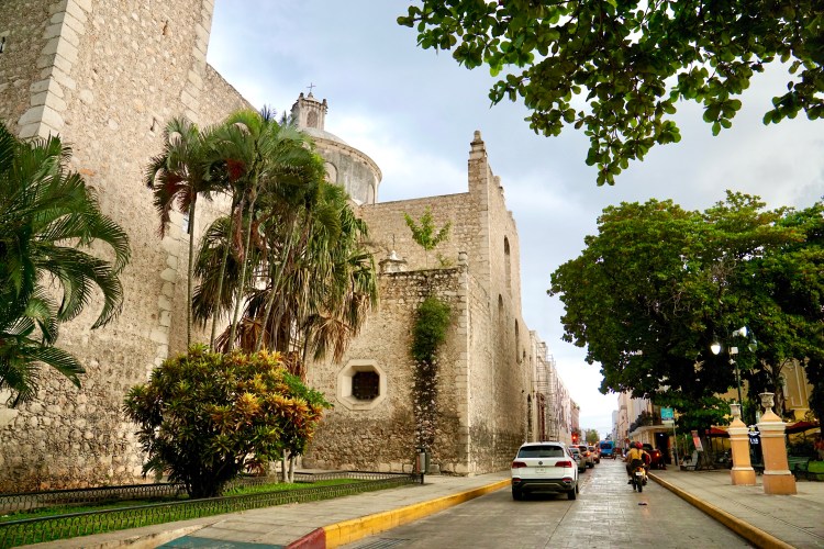 Die Stadt besitzt verschiedene architektonische Akzente. Neben dem offensichtlich kolonialen Einfluss, gibt es auch orientalische Einflüsse und auch spät-europäische Einflüsse, die man in den Fassaden wiedererkennen kann. In der Stadt von Mérida standen einst fünf Maya Pyramiden. Die letzte und größte, mit einem Ausmaß von drei Blocks (300m) Länge, wurde zu Beginn des 19.ten Jahrhunderts von den Spaniern zerstört. Aus dem Stein der Pyramiden wurden dann wiederum in erster Linie Kirchen errichtet. Mérida besteht seit fast 500 Jahren als Stadt, wie man sie seither kennt. Die Kirchen wurden von der Kolonialmacht errichtet, damit die Bevölkerung möglichst schnell die Anpassung an die neue Herrschaft anerkennt. Allerdings waren die Spanier sehr enttäuscht von der Gegend, da es hier weder Gold noch Silber oder ähnliches gab. Mit dem Handel von Seilen, gefertigt aus den Fasern der Blätter von Agaven, gelangten dann einige wenige Familien der Stadt zu enormen Wohlstand. Da diese Familien dann vor allem Europa bereisten und von deren Architektur begeistert waren, begannen sie damit, beispielsweise eine Oper im Wiener Stil nachzubauen.