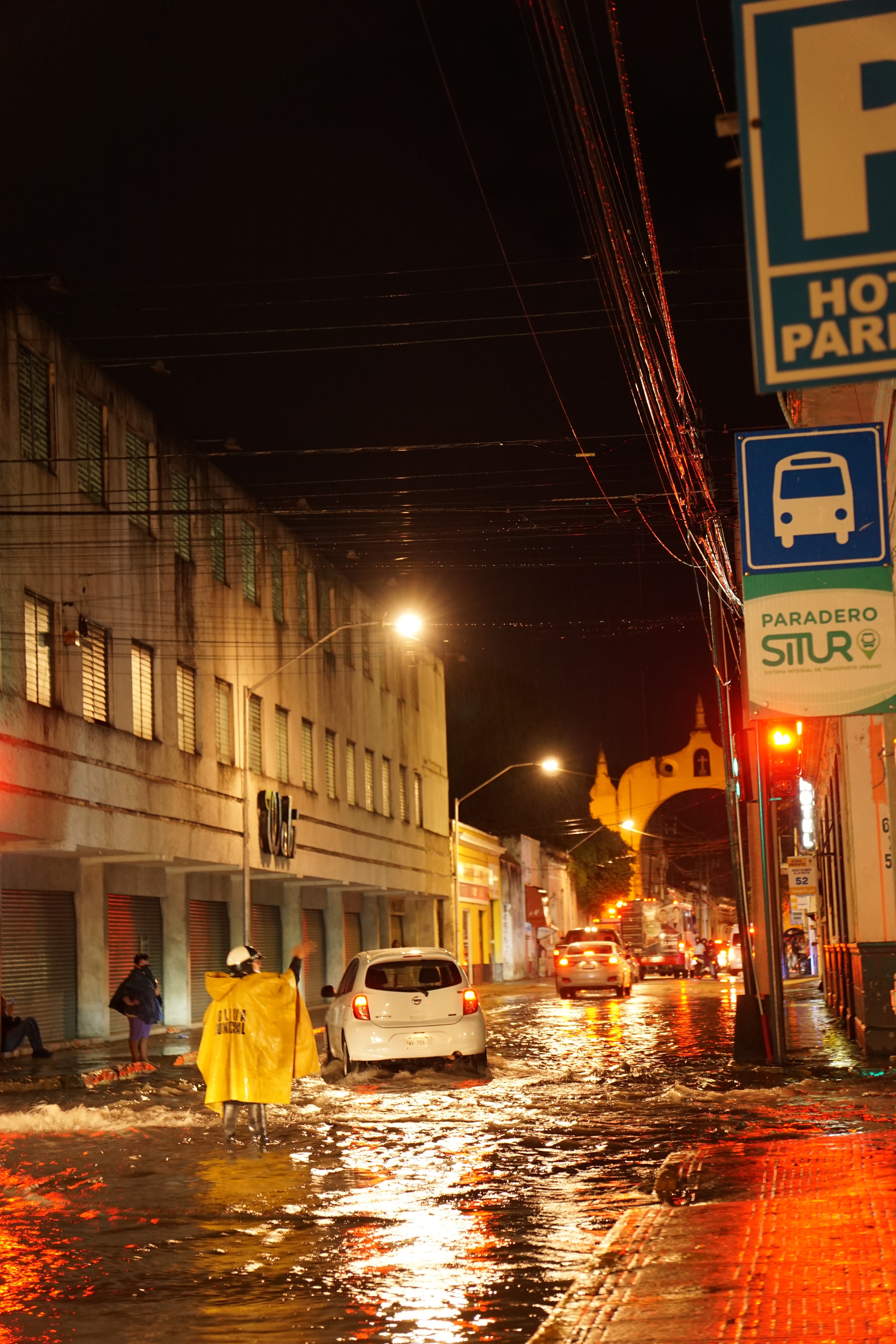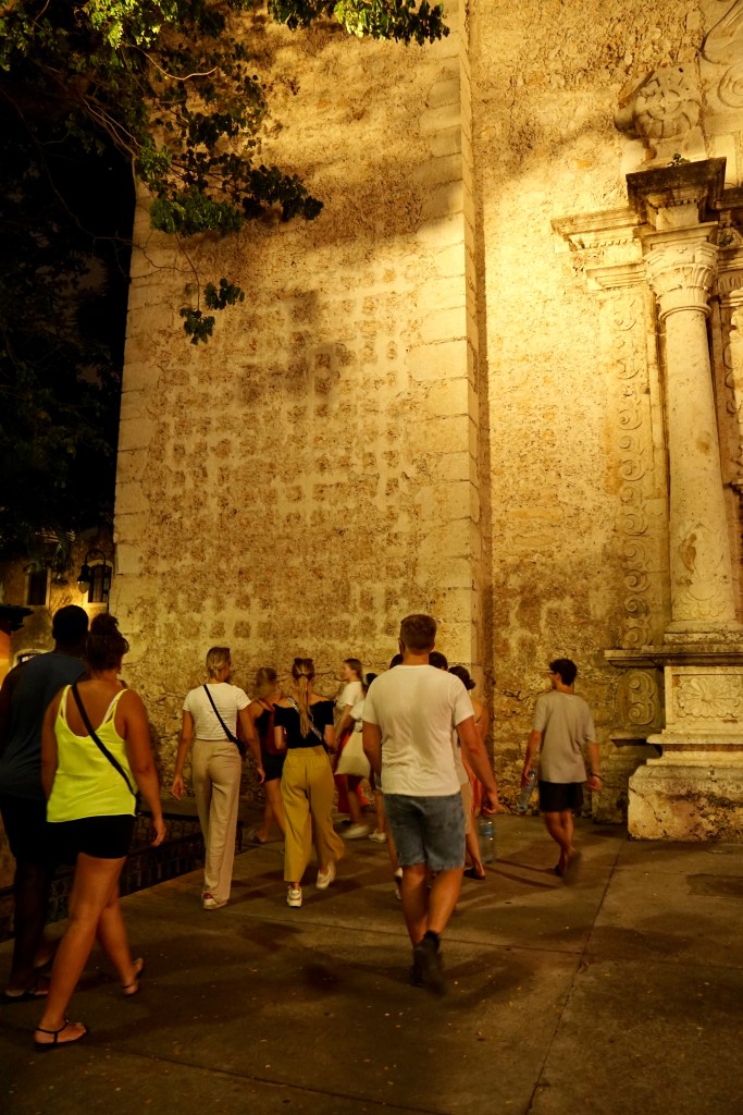 Wir zogen mit dem Guide und der Gruppe Touristen, die hauptsächlich aus Europäern in unserem Alter bestand, weiter durch die Straßen. Es war inzwischen dunkel geworden und gerade, als wir vor einer der Kirchen standen, fing es an zu regnen. Wir schafften es noch gerade rechtzeitig, einen Unterschlupf zu finden, ehe der Regen so richtig loslegte. Dort verweilten wir eine gute Dreiviertelstunde, allerdings blieb die erhoffte Wetterbesserung aus. In der Zwischenzeit erzählte der Guide noch die ein oder andere Geschichte und gab uns Empfehlungen, was wir an Essen und Getränken in der Gegend noch ausprobieren sollten. Nachdem es nicht besser zu werden schien, entschied die Gruppe, dass ein Fortfahren der Tour leider nicht sinnvoll ist. Somit bedankten wir uns beim Guide, gaben ihm Trinkgeld und jeder machte sich auf seinen Weg. Wir liefen noch zu einem Supermarkt, um ein paar Kleinigkeiten noch zu besorgen.