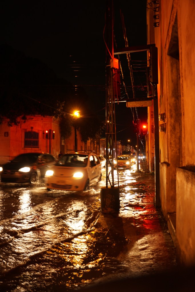 Im Anschluss wollten wir mit dem Uber nach Hause fahren, um dem Regen zu entgehen, allerdings war gerade Rushhour und kein Auto zu bekommen. Der Regen hatte etwas nachgelassen, wodurch wir uns für den Fußweg entschieden. Eigentlich war das auch nicht so schwierig, wir waren nur zwei Blocks von der Straße entfernt, der wir komplett bis zu unserer Unterkunft folgen konnten, doch die Praxis sah etwas anders aus als die Theorie. Durch den Regen, und die scheinbar schlichtweg nicht vorhandenen Abwassersysteme, staute sich das Wasser in den Straßen und insbesondere an den Kreuzungen. Dadurch war ein einfaches geradeaus nicht so wirklich einfach. Wir liefen eher im Schlangen-Stil, immer mal wieder zwei Blocks in die falsche Richtung, um dann eine Straße überqueren zu können, um dann wieder einen Block in die andere Richtung zu laufen, um wieder einen Block in Richtung unserer Unterkunft zu schaffen. Mit Gummistiefeln wäre das alles kein Problem gewesen. Man hätte einfach die Kreuzungen überqueren können und wäre durch das Wasser gelaufen. Mit normalem Schuhwerk war das allerdings nicht so einfach, wenn man diese trocken nach Hause bringen wollte. Weiße Leinenschuhe erwiesen sich hier als nicht wirklich praktisches Schuhwerk. Es war abenteuerlich und fühlte sich teilweise wie ein Parkour-Computerspiel an. Wir schafften es schließlich, mit einigermaßen trockenen Füßen, und ohne komplett von Autos mit Wasser bespritzt worden zu sein, nach Hause. Wir kochten uns dann noch etwas, ehe wir uns schlafen legten.