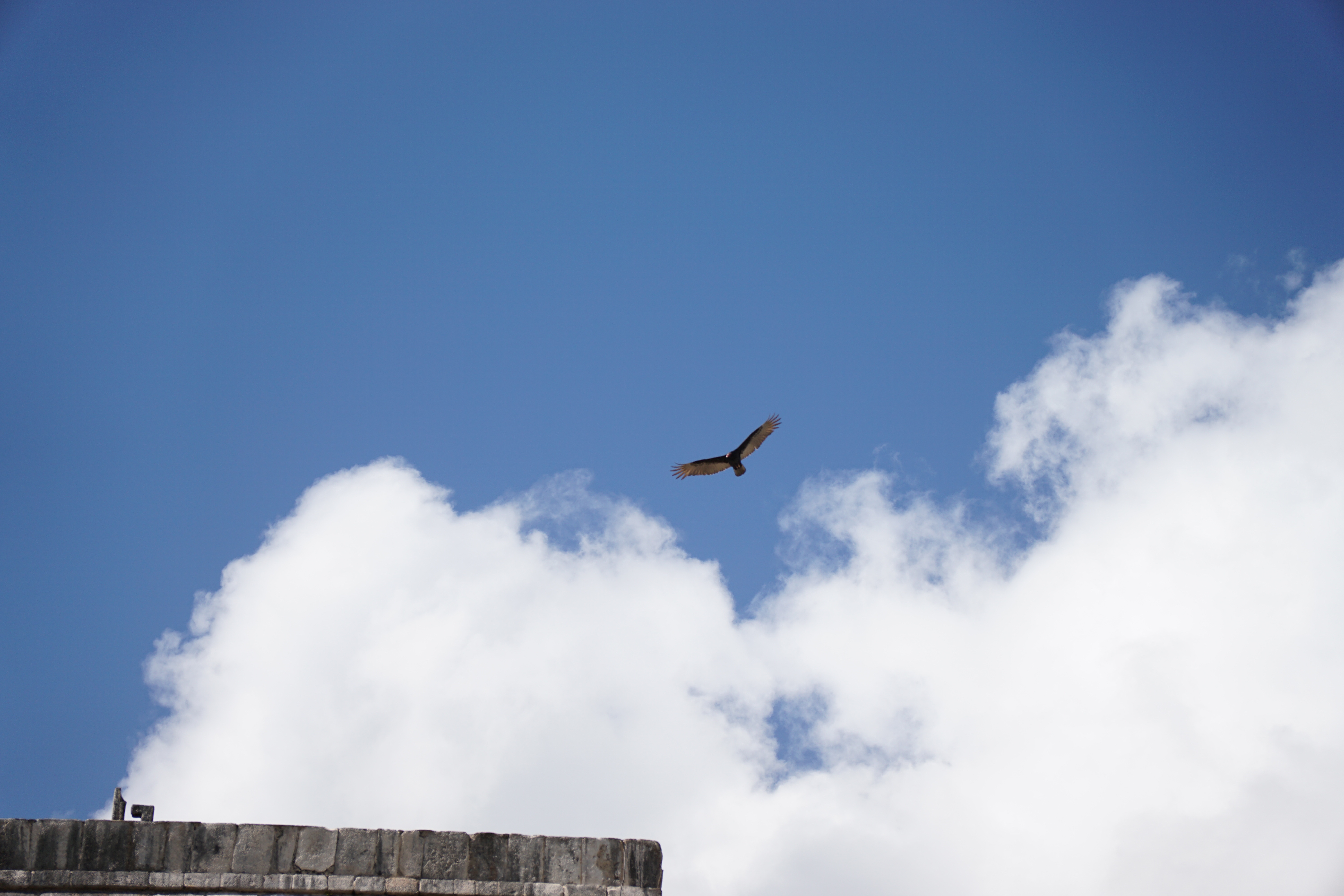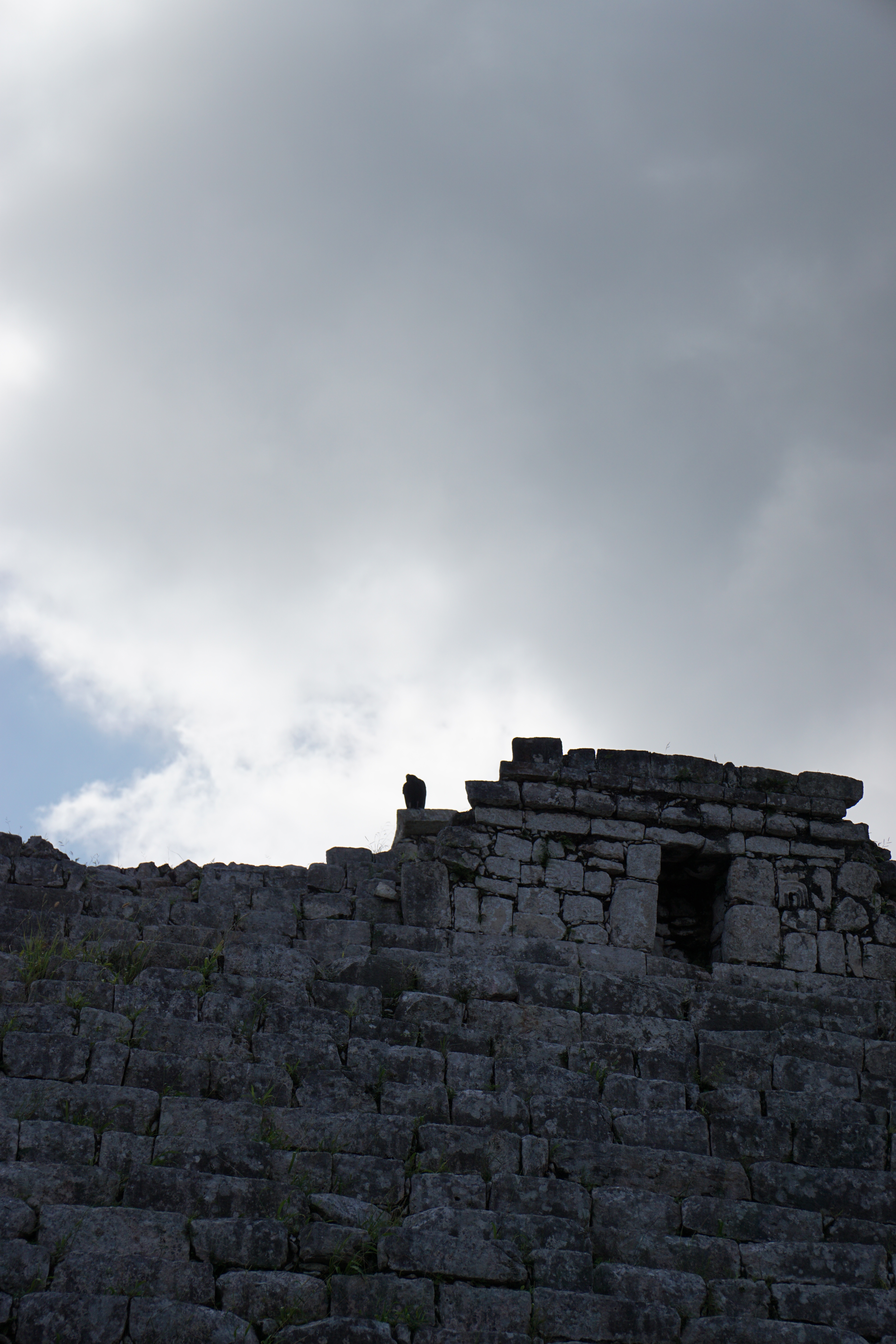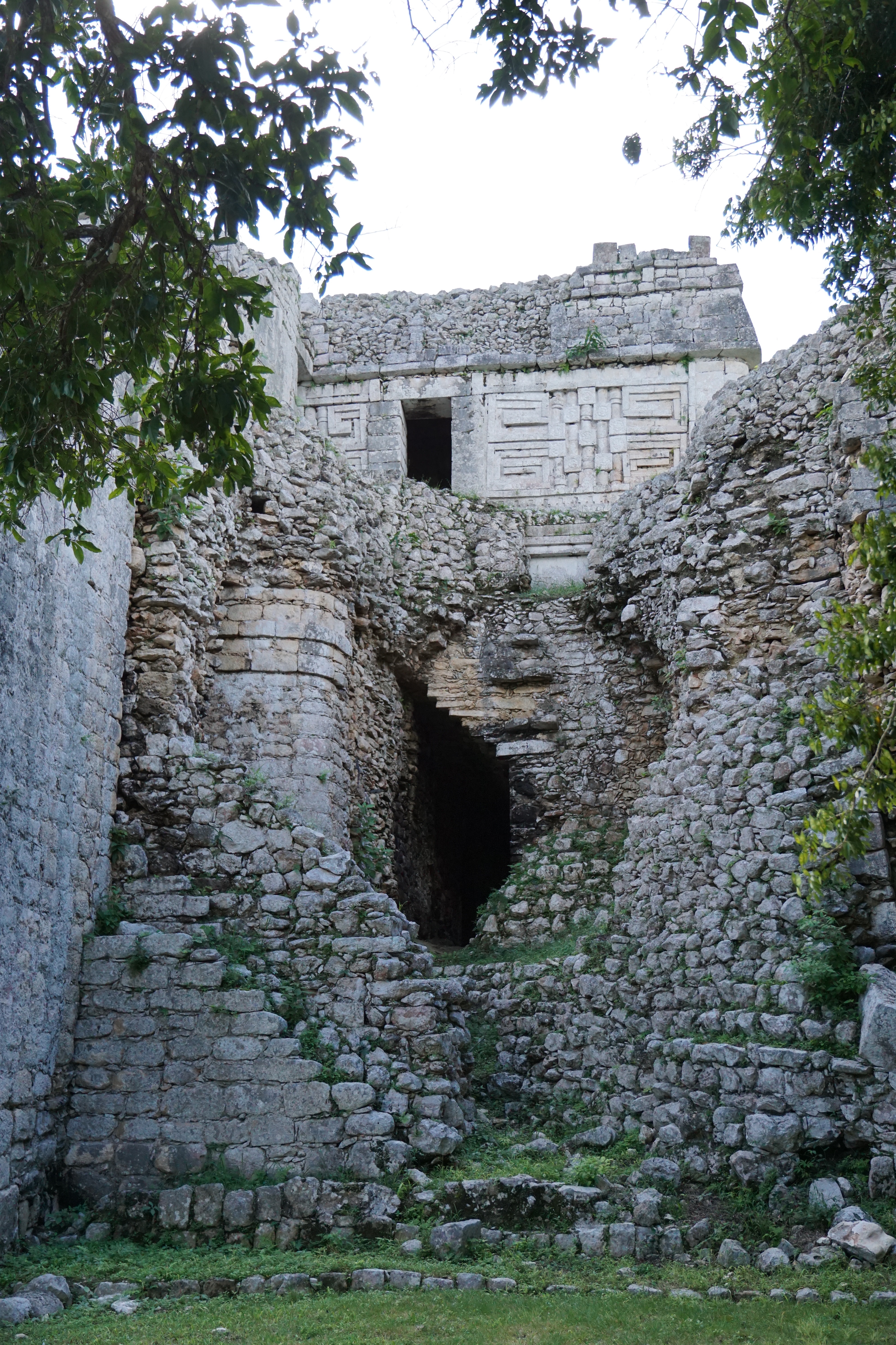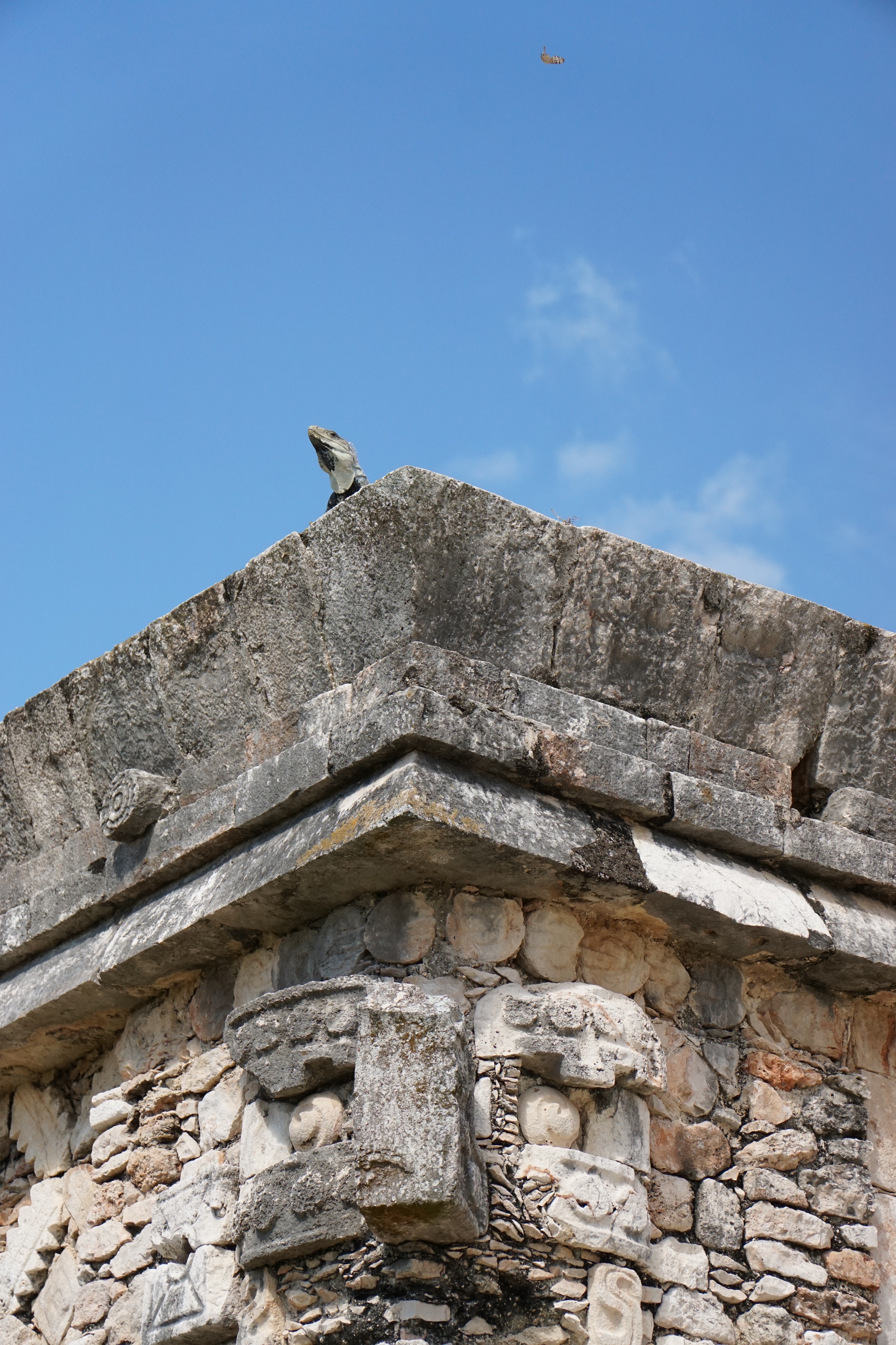 Doch am meisten erstaunt waren wir über die Bauweise in Bezug auf die Akustik. Generell ist die Pyramide, sowie eine nahegelegene Anlage so gebaut, dass sie die Akustik perfekt wiedergibt, ein Echo entsteht und Töne sogar noch verstärkt werden. Dies nutzten die Herrscher bei ihren Ansprachen vor dem Volk. Megafon oder Mikrofon gab es schließlich noch nicht. Wenn man klatschte oder etwas laut rief, wurde es mit einem lauten Echo zurückgeworfen. Doch eine Seite der Pyramide war besonders, wenn man hier in die Hände klatschte, wurde auch ein Sound zurückgeworfen. Allerdings hörte man das Geräusch eines einheimischen, und bei den Maya heiligen, Vogels. Dies funktionierte nur auf einer Seite, dafür aber auch immer und der Klang war sehr deutlich. Das war wirklich zutiefst beeindruckend, dass solche Besonderheiten in diesen Bau eingeflossen sind. Im Anschluss ging es noch zu einem Teil der Anlage, wo früher ein Ballspiel gespielt wurde. Die Wände waren mit interessanten Bildern, die in den Stein gehauen wurden, geschmückt. So eine Arena für den gleichen Sport hatten wir bereits in Uxmal gesehen. Allerdings erfuhren wir, dass mit diesem Spiel zum Teil auch die Menschenopfer ausgewählt wurden. Ganz sicher ist man nicht, wie die Regeln waren, oder wer dann geopfert wurde, ob Gewinner oder Verlierer. Nach anderthalb Stunden endete die Tour und wir erkundeten auf eigene Faust die restlichen Teile der Stätte und gingen auch nochmal zu den besonders interessanten Orten.