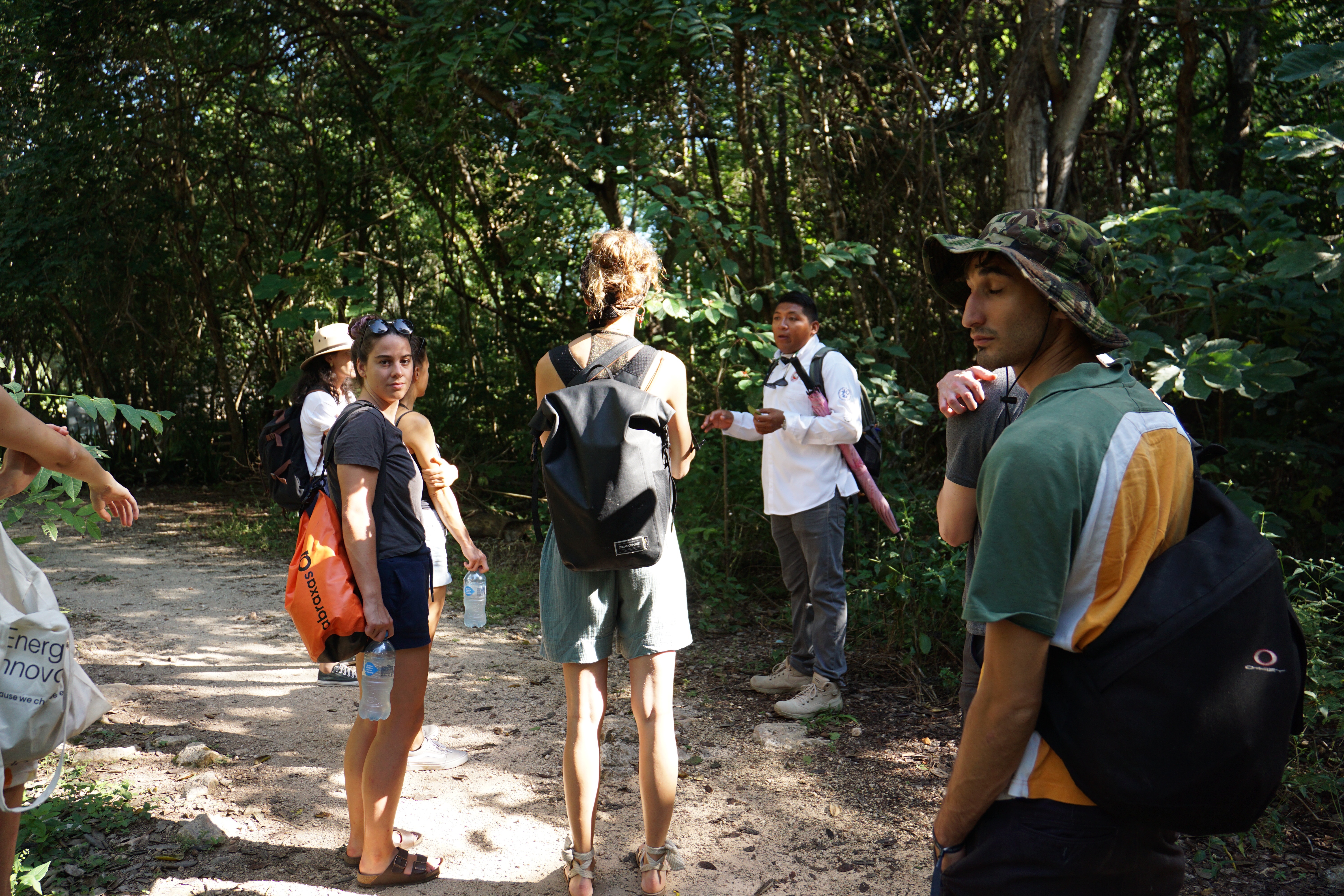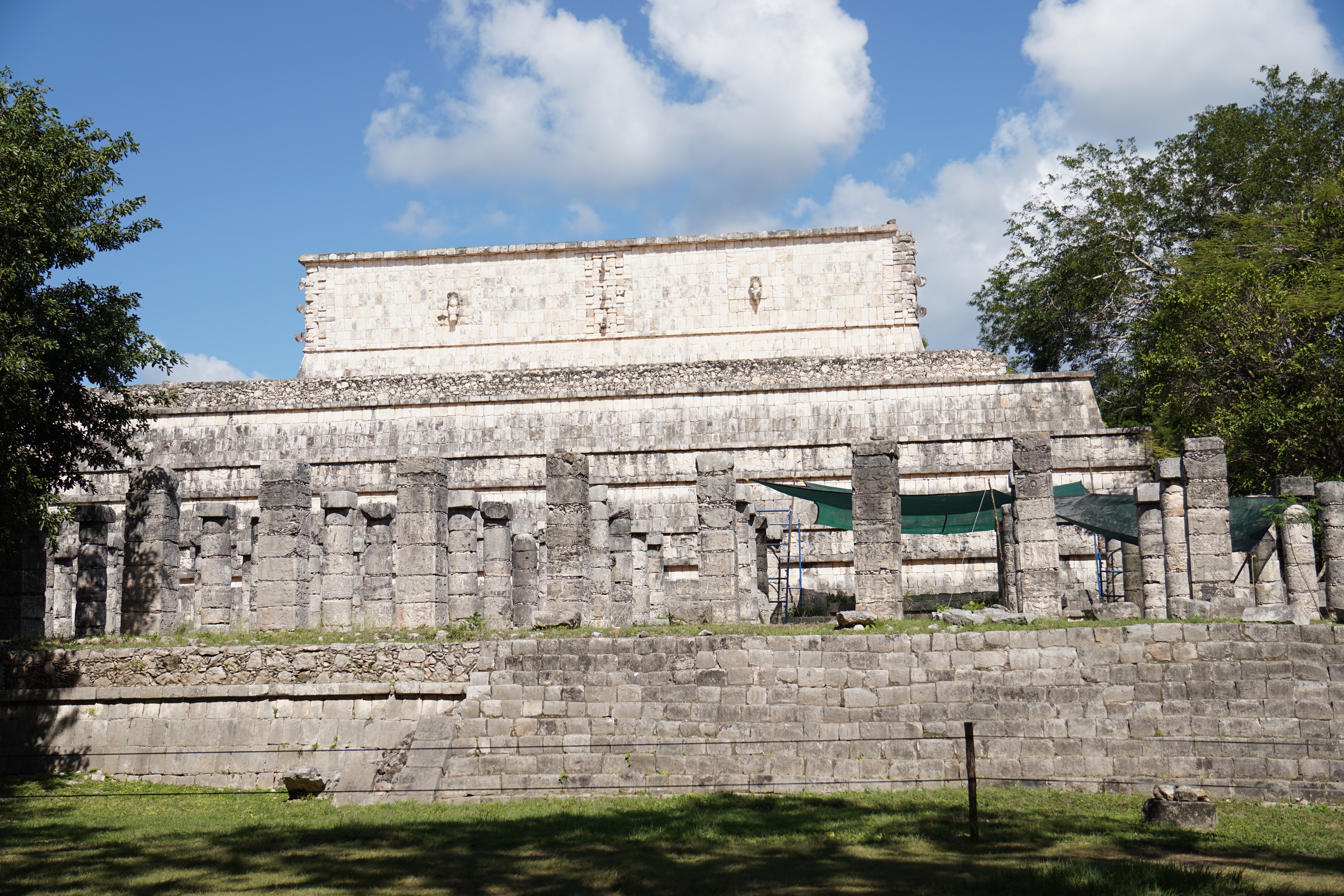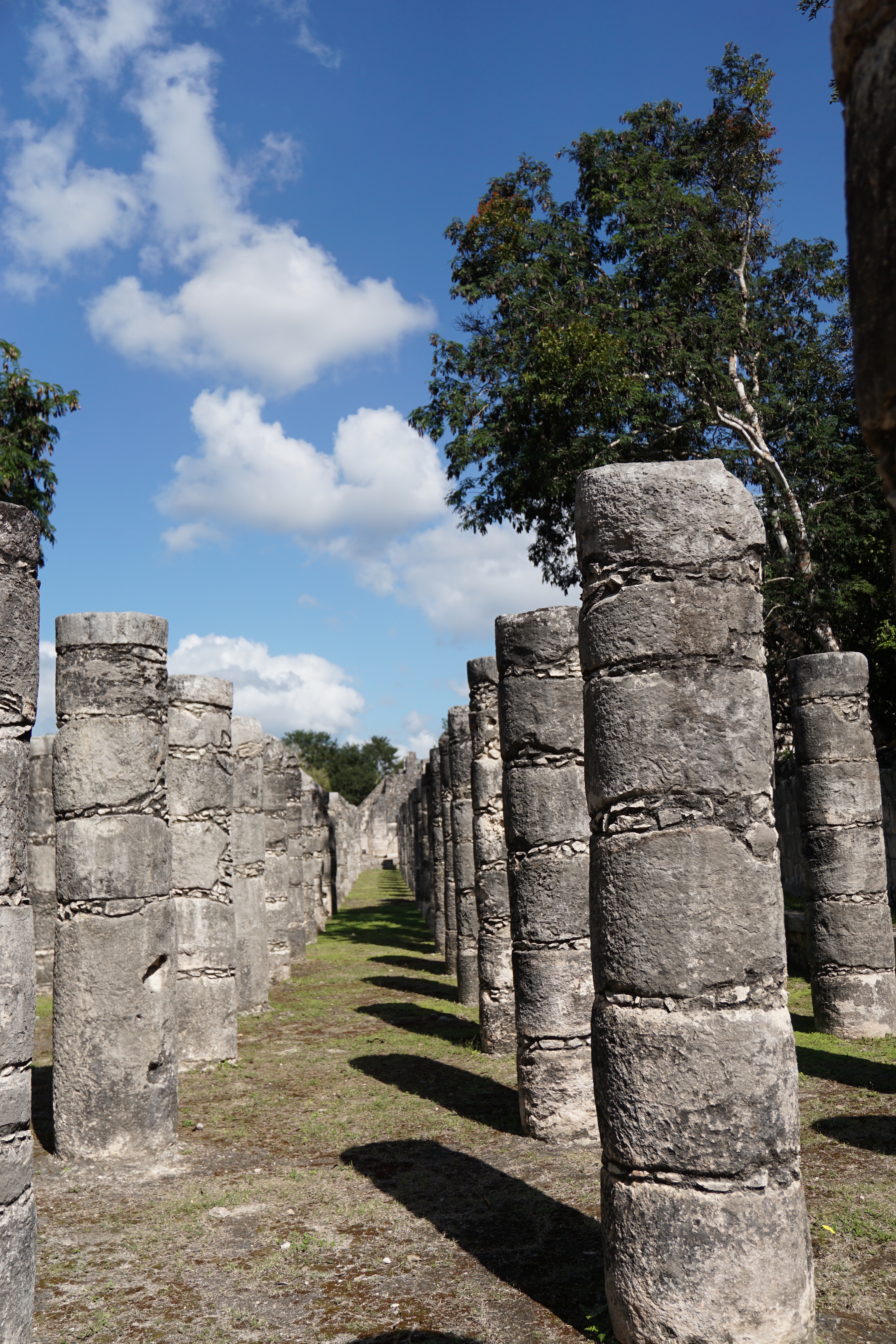 Unsere kleine Gruppe von Personen aus dem Colectivo wurde direkt von einem Guide begrüßt, der uns erstmal erklärte, wo wir später wieder abgeholt werden können, wo die Kassen sind, und einige weitere Details, ehe er seine Tour anbot. Zusammen mit insgesamt sechs weiteren ließen wir uns zu der Tour überreden, um mehr Informationen zu diesem berühmten Ort bekommen zu können. Wir kauften zunächst die Tickets, die mit 27 €/p.P ähnlich teuer wie in Uxmal waren. Dann ging die Tour los. Zunächst liefen wir an der eigentlichen Attraktion, der großen Pyramide von Chichén Itzá vorbei. Es ging zu einer Cenote. Unser Guide klärte uns über die Entstehung und das frühere Aussehen dieser auf. Früher hatten die meisten Cenoten noch ein natürliches Dach, welches mit der Zeit allerdings meist einstürzte, wodurch oftmals nur noch die (Wasser-)Löcher zurückbleiben. Zudem hatten die Cenoten zu Zeiten der Maya eine besondere symbolische Bedeutung. Ihrem Glauben nach, lebte in ihnen der Gott des Regens und der Fruchtbarkeit, schließlich befand sich viel Wasser in den Cenoten. Aus diesem Grund wurden regelmäßig Opfer, auch Menschenopfer, dem Gott erbracht, in dem lebende Menschen in die Cenoten geworfen wurden. Aus diesem Grund befanden sich auch oftmals Tempel entweder direkt an der Cenote, oder in der Nähe. Hierbei sei aber vermerkt, dass nur wenige der über 5.000 Cenoten in Yucatan für Opferungen genutzt wurden.