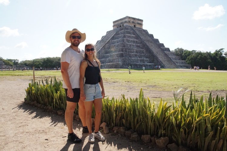 Heute sollte es zu einer der berühmtesten Stätten des ehemaligen Maya-Reichs gehen. Mitunter der Hauptgrund, warum wir überhaupt nach Valladolid gefahren sind, ist die Nähe zu Chichén Itzá. Um kurz vor sechs Uhr klingelte der Wecker und wir standen etwas zerknirscht auf. Wir verließen die Unterkunft um kurz vor sieben und begaben uns auf den Weg in Richtung des Bus-Terminals. Doch statt mit einem ADO-Bus wie sonst zu fahren, entschieden wir uns für ein „Colectivo“. Das ist quasi ein Gemeinschaftstaxi. Hiermit kostete die Dreiviertelstunden lange Fahrt nur 4 € pro Person für Hin- und Zurück. Somit kostete es nur ein Viertel von dem, was wir mit der großen ADO-Busgesellschaft bezahlt hätten. Wir stiegen in den vollbesetzten Kleinbus und losging die Fahrt. Um kurz nach acht Uhr kamen wir bei der archäologischen Ausgrabungsstätte von Chichén Itzá an. Da das Ganze um 8 Uhr öffnet, gehörten wir zu den ersten Besuchern. Genau so wollten wir es haben, da es dann noch nicht so voll und somit schöner sein soll.