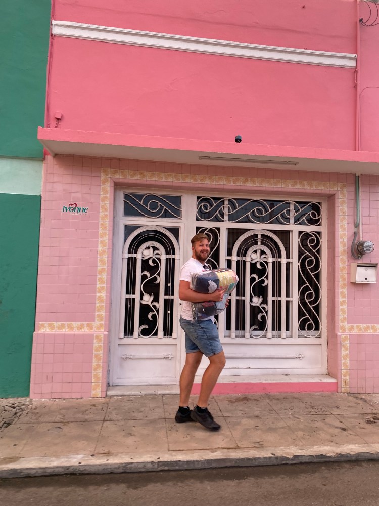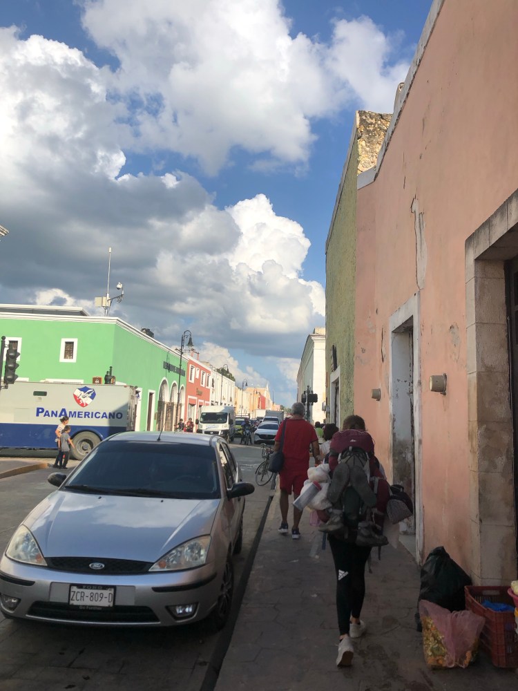 Wir verlassen die schöne Stadt Mérida, um nach Valladolid aufzubrechen. Nach einem leckeren Frühstück mit Ei, Bacon, Früchten und einem Smoothie, packten wir unsere Sachen und verließen die Unterkunft. Gefühlt werden unsere Rucksäcke jedes Mal etwas kleiner und die Sachen, die wir mithaben immer mehr. Wir wissen natürlich, dass das beides nicht unbedingt der Fall ist. Wir stiegen in ein Uber und ließen uns zum Busterminal fahren. Dort konnten wir nach einer kurzen Wartezeit auch schon in unseren Bus steigen. Statt eines normalen Reisebusses gab es für uns heute nur einen Kleinbus, mit dem wir sonst eher zu Ausflügen fahren. Sechzehn Personen fasst der Bus und ist natürlich bis auf jeden Sitz ausgebucht. Es gibt zwar eine funktionierende Klimaanlage, allerdings schaffte diese nicht, die Luft ausreichend zu kühlen, wenn sechzehn Passagiere im Bus sitzen und schwitzen. Somit war es relativ schnell, ziemlich warm und stickig im Bus, noch dazu hatten wir wenig Platz. Egal, sind ja „nur“ zweieinhalb Stunden. Kopfhörer rein und losgeht die Fahrt. Über die ruppigen Straßen Mexikos, mit den vielen anstrengenden Speed-Bumps, fahren wir rasant durchs Land. Um kurz nach 15 Uhr erreichen wir die kleine Stadt Valladolid. Wir schultern unsere Rucksäcke, nehmen unsere Handgepäck-Rucksäcke vor die Brust und jeder schnappt sich einen Beutel, dann geht der Marsch zur Unterkunft auch schon los. So langsam und anstrengend vergehen die Meter und Minuten sonst nur auf den letzten Kilometern von Langstreckenläufen.