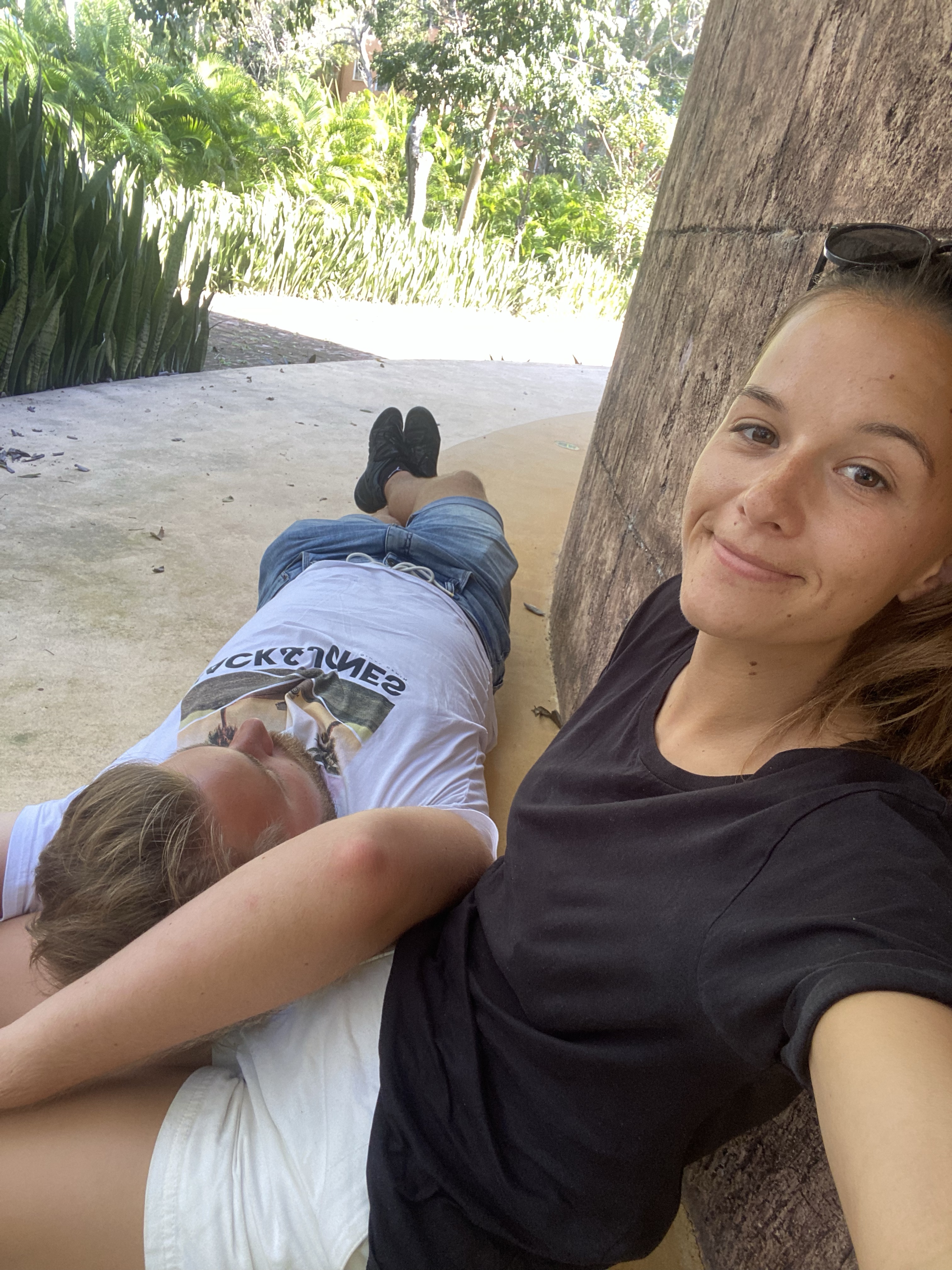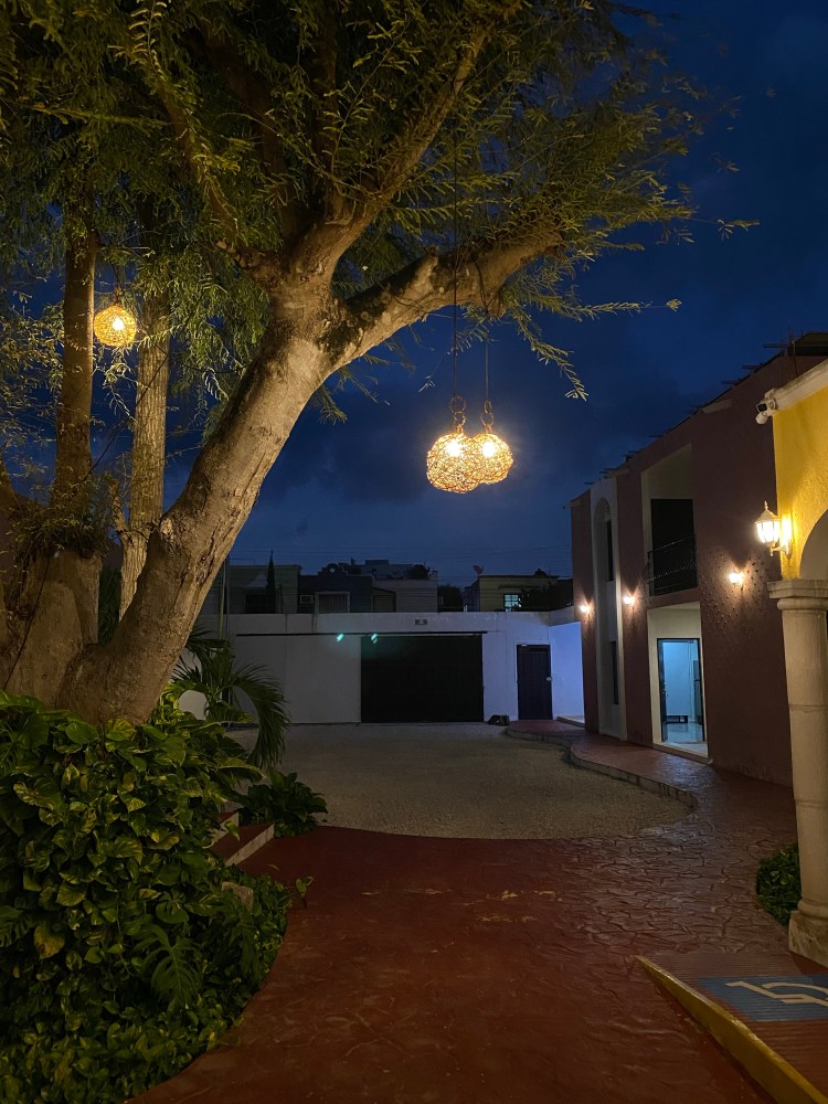 Wir schafften es zu unserer Unterkunft und kamen erschöpft und durchgeschwitzt bei einem schönen kleinen Appartment mit tollem grünen Innenhof an. Erstmal wurde geduscht und die Klimaanlage angeworfen. Nach einer kleinen Erholungsphase ging es zum lokalen Supermarkt, um sowohl das Frühstück und Abendessen der kommenden Tage zu sichern, als auch um ausreichend Trinken zu kaufen. In Mexiko wird schließlich generell dazu geraten, das Leitungswasser nicht zu trinken. Selbst die Lokals machen das meist nicht und das wollen wir dann erst recht nicht probieren. Was wir immer besonders witzig und interessant finden ist, dass Nutella oftmals, wie in Deutschland die hochprozentigen Getränke, weggesperrt sind. Da es bereits dunkel war, als wir vom Einkaufsladen zurückkamen, wird die Stadt erst am kommenden Tag erkundet. Wir kochten uns ein leckeres Nudel-Gericht und schauten uns gemeinsam das Donnerstagabend American-Football-Spiel an.