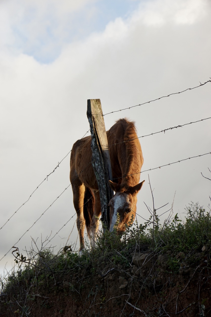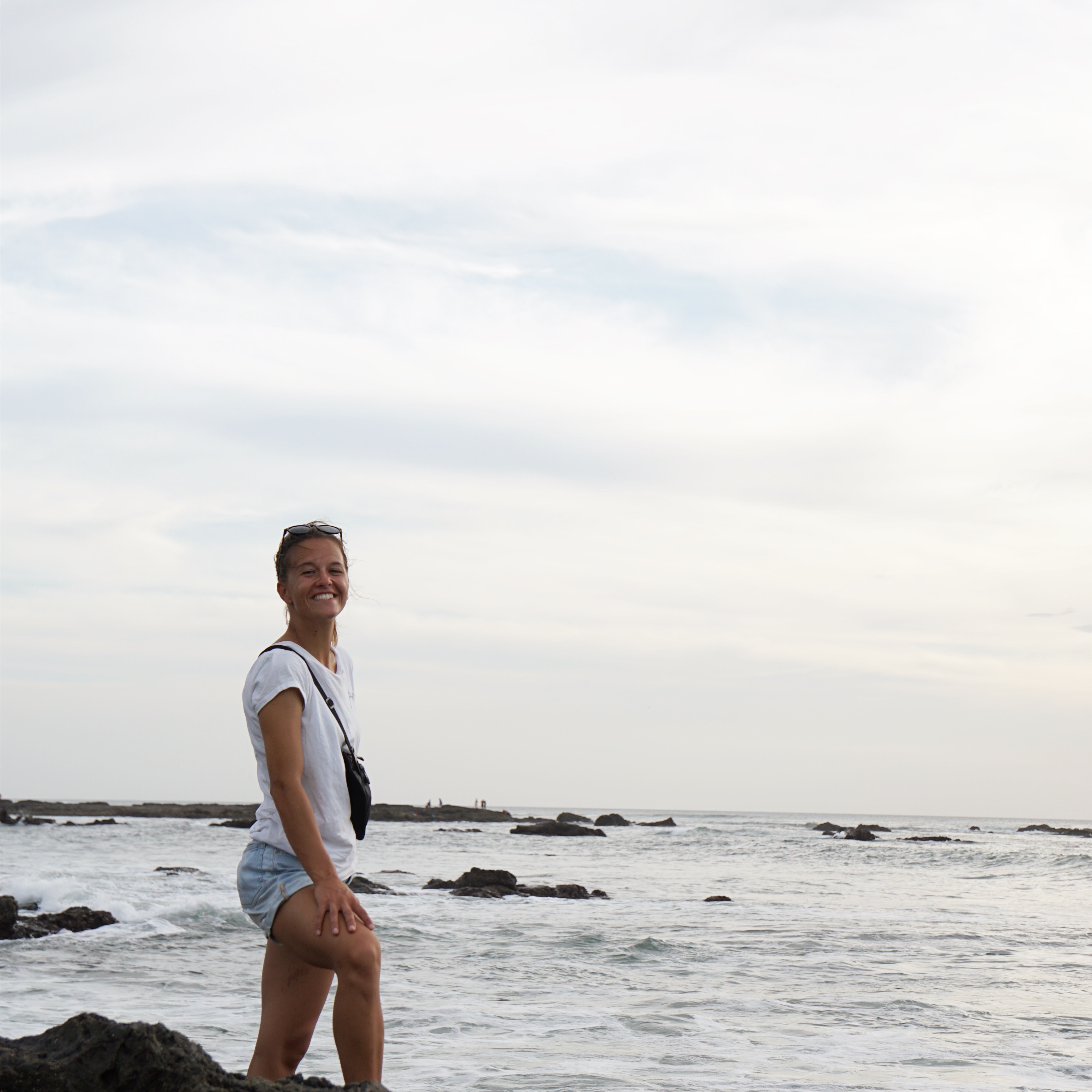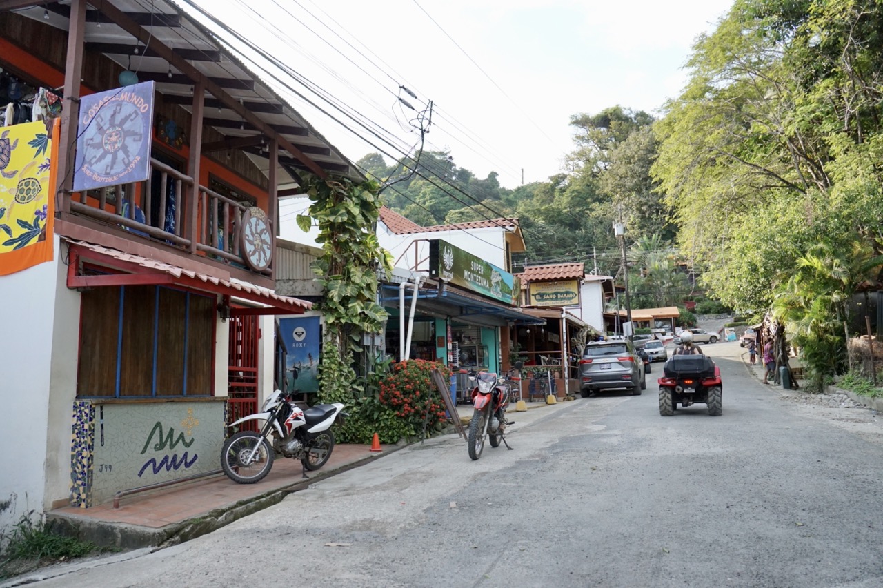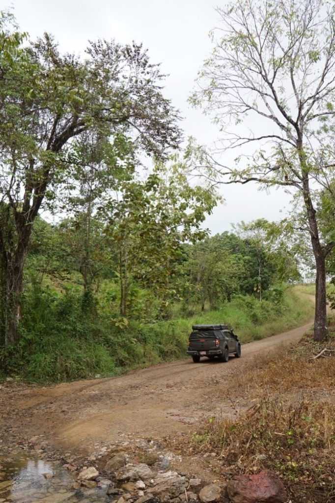 Am Freitagmorgen erkundeten wir ein wenig den Strand von Mal Pais. Hier gibt es sogenannte Gezeitenpools. Also mit Meerwasser gefüllte Becken, die bei Ebbe entstehen und wie kleine Whirlpools zum Baden einladen. Wir waren zwar selber in keinem Pool drin, sammelten aber einige Muscheln am Strand und kletterten ein bisschen auf den schroffen Felsen entlang. Ursprünglich hatten wir geplant Santa Teresa, den Nachbarort zu erkunden. Nach einem kurzen Abstecher dahin entschieden wir uns jedoch dagegen. Der Strand soll wohl ein Surferparadies sein, der Ort hingegen besteht lediglich aus einer großen staubigen Straße und viel Verkehr. Also ging es für uns weiter nach Samara. Google Maps schlug uns dafür zwei Routen vor. Eine an der Küste entlang und eine außen rum. Die Äußere führte uns jedoch den kompletten Weg zurück, den wir die letzten Tage gefahren sind und war dann auch noch 100km länger. Zeitlich sollten sich die Routen jedoch nicht so viel nehmen. Das heißt, die Route an der Küste entlang verspricht Gravel Straßen und Abenteuer. Dafür haben wir ja schließlich unser Auto, oder nicht? Also los gehts. Ein gutes Abenteuerzeichen ist immer, wenn die Straße in die man fahren soll, gar nicht als wirklich Straße erkennbar ist. Über Feldwege und Schotterstraßen düsen wir also über Wind und Wiesen, durch Dörfer und Wälder.