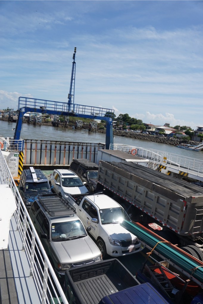 Doch wie so oft war auch hier das Glück auf unserer Seite. Vielleicht war der Ticketverteiler genervt von Annelies ständigem Nachfragen oder wir hatten wirklich einfach nur Glück. Denn 2 Minuten vor Abfahrt bekamen wir dann als allerletzte noch ein Ticket zum Ticketkauf. Also im Sprint zum Ticketschalter und wieder zurück. Zentimetergenau passten wir dann noch in den letzten Platz auf der Fähre. Bereits beim Drauffahren waren die Taue der Fähre gelöst und wir hatten noch nicht mal die Handbremse angezogen, da hatten wir schon abgelegt. 75 sonnige Minuten später erreichten wir nach einer gemütlichen und schönen Fährüberfahrt Paquera.