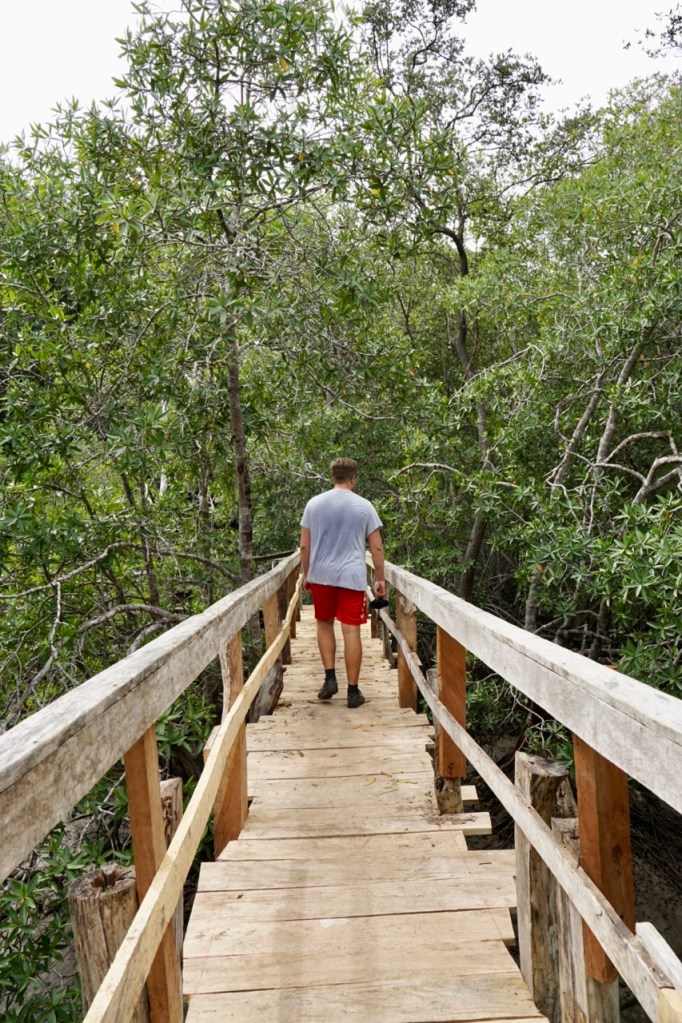 Unser Tagesrhythmus beginnt langsam, sich der Sonne anzupassen. Geht die Sonne um 6 Uhr morgens auf, sind wir wach. Ab 18 Uhr herrscht hier totale Dunkelheit und wir werden langsam müde. So schwamm Hendrik auch an diesem Tag bereits um 6 Uhr morgens im Pazifik und Annelie genoss ihren Morgenkaffee in der Morgensonne. Auch heute sollte es wieder in ein Reservat gehen, mit der Hoffnung auf ein paar Tiersichtungen. Das Curu Wildlife Refuge befindet sich im Südosten der Nicoya Halbinsel und gibt seit 1983 ein Heim für Tier- und Pflanzenwelt auf über 1000 ha Fläche. Wer richtig viel Zeit und Glück hat, könnte rein theoretisch über 200 Vogelarten, 78 unterschiedliche Säugetiere und 87 Reptilienspezies beobachten. An der Einfahrt zum Reservat trägt man sich in eine Liste ein und kauft das Ticket für die Tagesnutzung (30€/2 Personen). Mit dem Auto geht es dann noch ca. 2km über einen kleinen Feldweg bis zum kleinen Parkplatz im Wald.