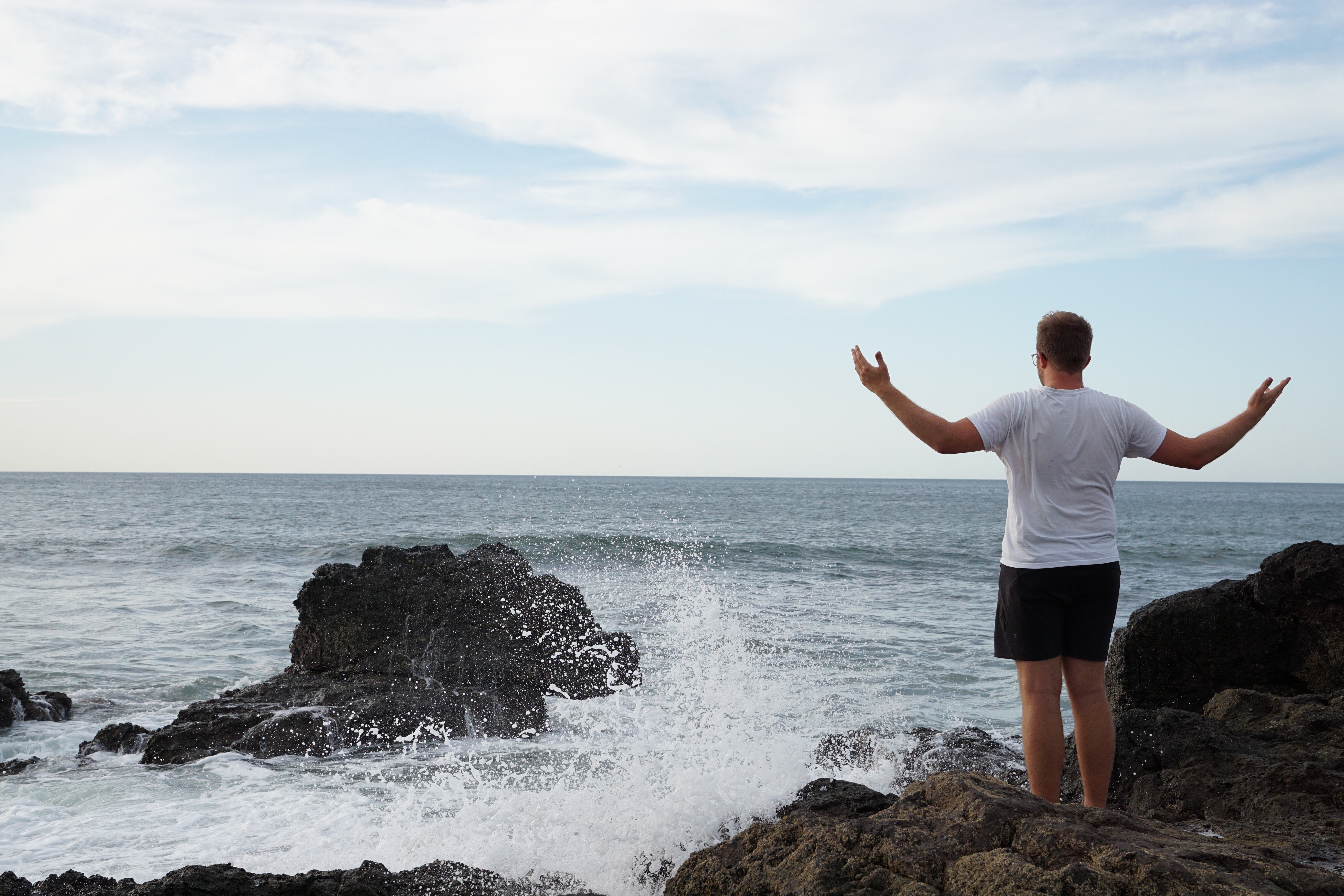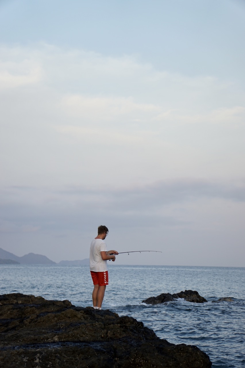 Vor unserem Stellplatz ragten ein paar hübsche Steine aus dem Wasser uns ergaben für uns die perfekte Sonnenterrasse. Zum Sonnenuntergang stießen wir mit leckeren Cocktails an und Hendrik versuchte sein Angelglück. Tatsächlich bissen auch zwei Fische an, gingen jedoch wieder ab. Ungünstigerweise verfing sich dann der Köder noch an einem Stein. Alles Ziehen und Ruckeln brachte keinen Erfolg und so musste der Köder leider im Meer zurückgelassen werden, was natürlich super ärgerlich war. Trotzdem verbrachten wir einen sehr schönen Abend am Strand und gingen erst bei totaler Dunkelheit wieder zurück zu unserem Auto und ins Bett.