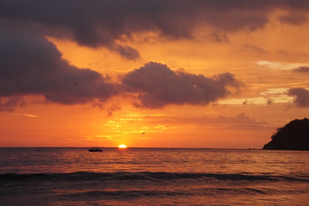 In Samara übernachten wir wieder auf einem Campingplatz auch direkt am Meer. Die größte Hürde ist auch hier wieder die Sprachbarriere. Mit Hand und Fuß versuchen wir uns mit dem Besitzer zu verständigen und irgendwie klappt das auch immer. Trotzdem glauben wir, dass durch die Sprachbarriere eine gewisse Distanz zu den Menschen hier vor Ort entsteht. Oft wäre es sehr viel einfacher, wenn wir uns wenigstens ein bisschen über das Wetter oder die Reise oder das Land unterhalten könnten. Oder wenigstens verstehen könnten, wo das Bad oder der Strom ist. Für unsere nächsten Reisen wollen wir auf jeden Fall versuchen, ein paar Spanisch-Grundlagen aufzubauen. Unseren Nachmittag füllten wir mit einer großen Strandwanderung und kamen erst zurück, als die Sonne schon untergegangen war. Wir erlebten einen der wohl schönsten Sonnenuntergänge in Costa Rica und freuten uns schon jetzt auf den morgigen Strandtag.