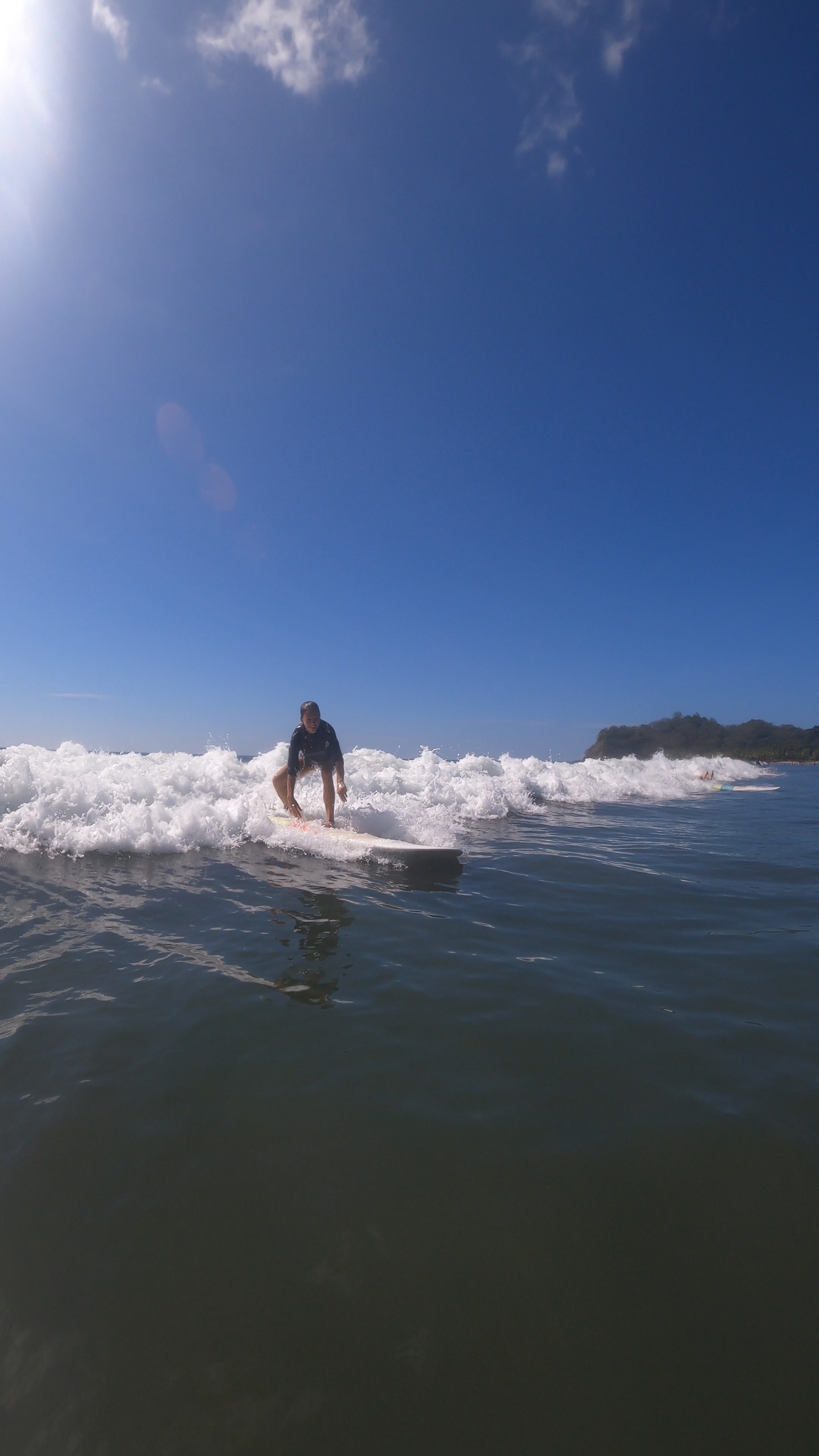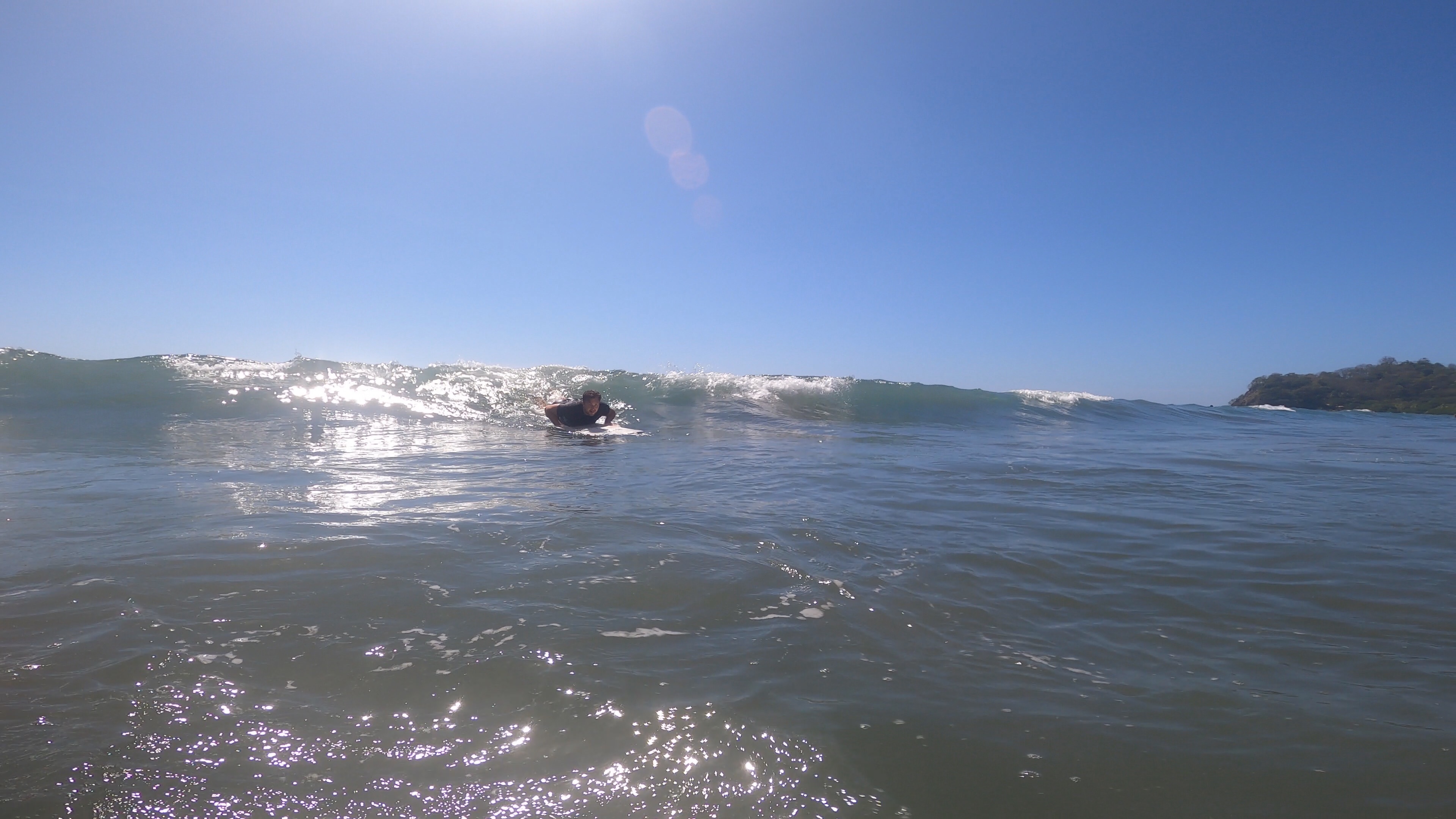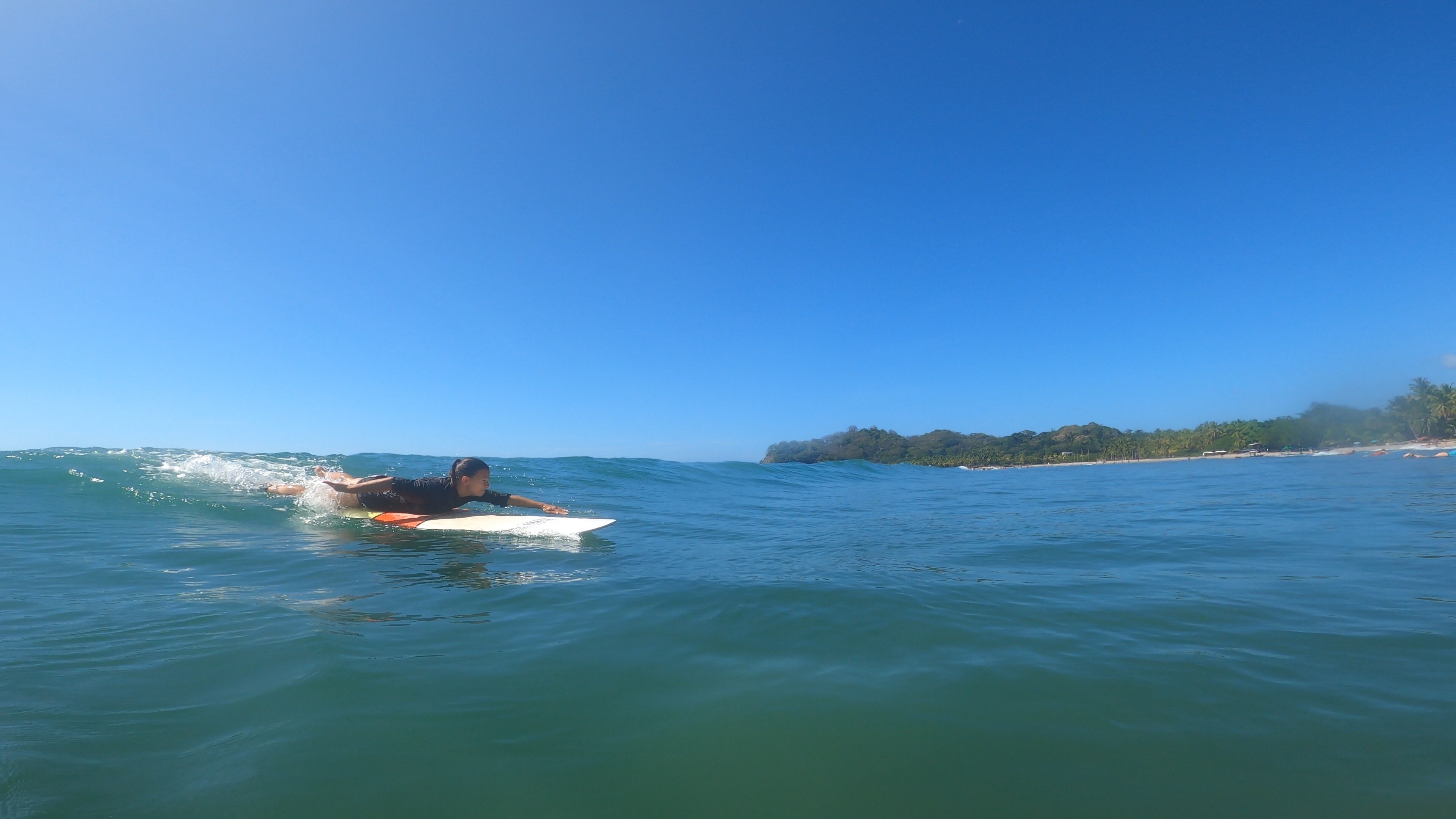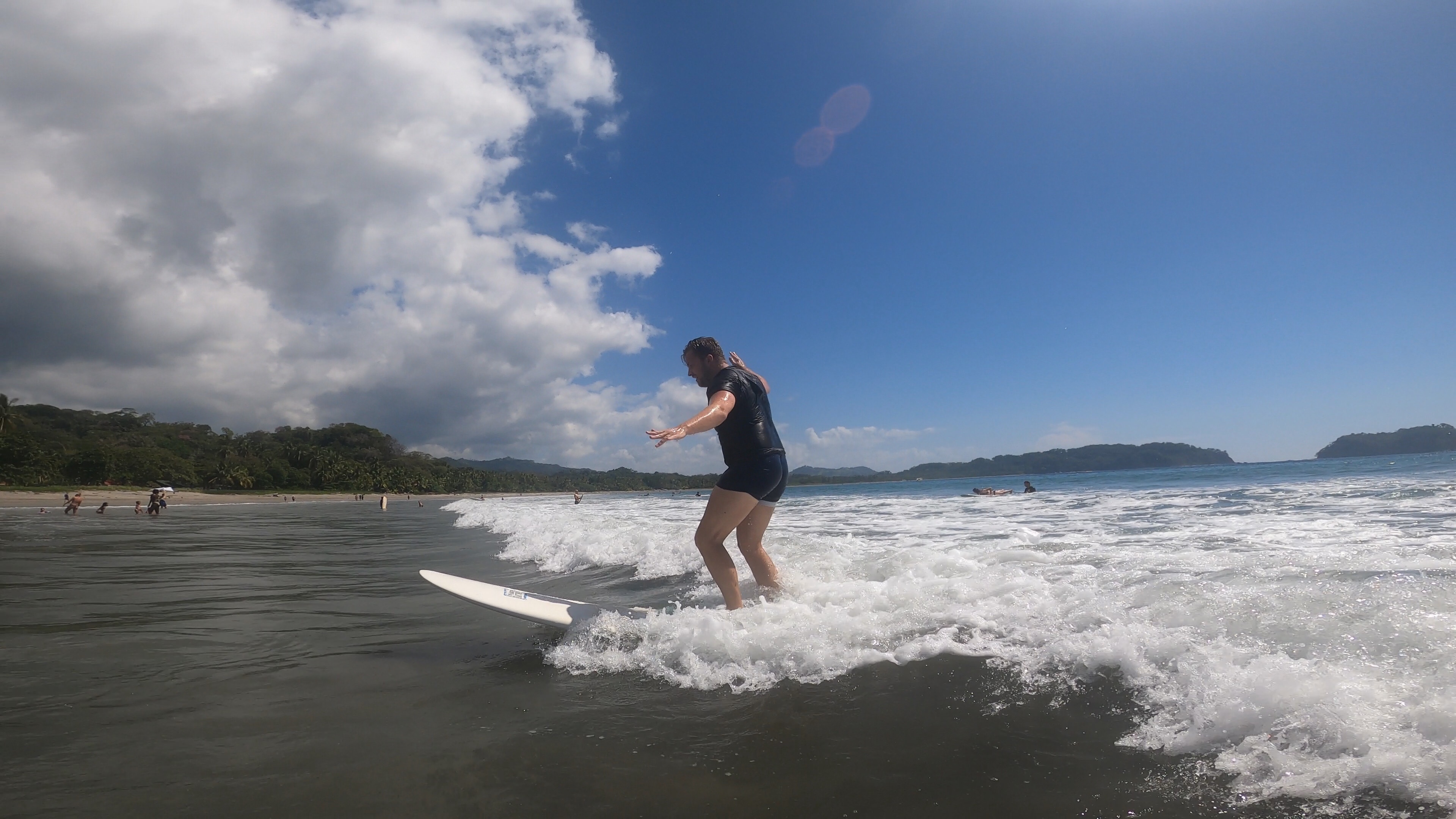 Für den Samstag hatten wir uns einen ganz entspannten Tag vorgenommen. Wir wollten mal so richtig „Pura Vida“ genießen und einfach einen tollen Urlaubstag verbringen. Der Tag startete perfekt mit einem leckeren Frühstück mit Blick auf das Meer. Nach unserem Frühstück liehen wir uns am Surfboardverleih ein paar Surfbretter aus und stürzten uns in die Wellen. Wir sind beide keine Surfprofis und haben eher wenig Erfahrung. Doch trotz ein paar unfreiwilligen Nasenspülungen und Bauchplatschern schafften wir es einige Wellen zu reiten. Angefühlt hat es sich auf jeden Fall, als wären wir Hawaiireif und könnten bald bei den großen Surftourneen mitmachen. Wir hatten sehr viel Spaß uns genossen das kühle Wasser bei den sehr heißen Temperaturen draußen. Samara gilt als recht Anfängerfreundlich, da der Meeresboden nur aus Sand besteht und die Brandung sehr sacht zugeht. Am Samstag wollte das Meer wahrscheinlich besonders sacht sein und brachte nur vereinzelt ein paar surfbare Wellen hervor. Wir hätten wahrscheinlich auch einfach ein Tick eher dran sein müssen.