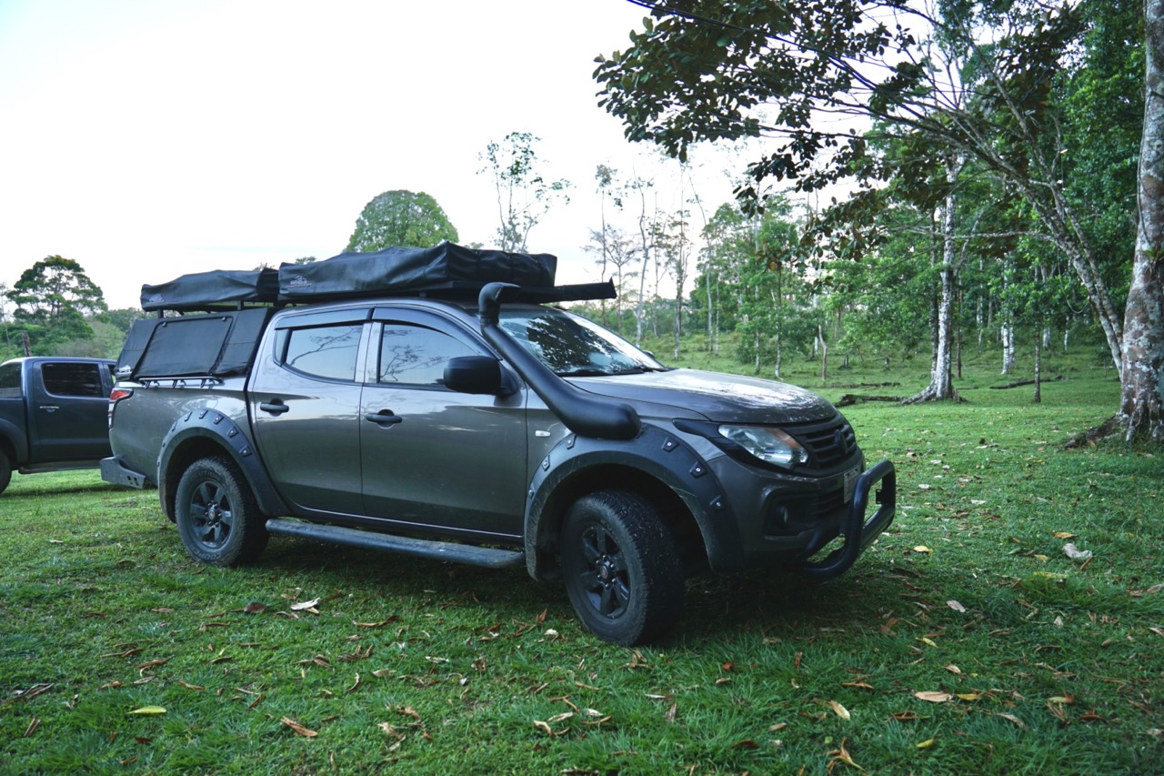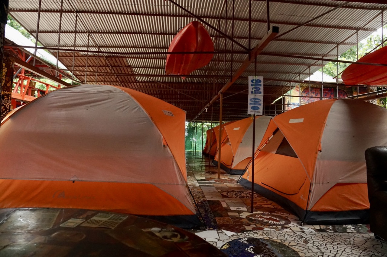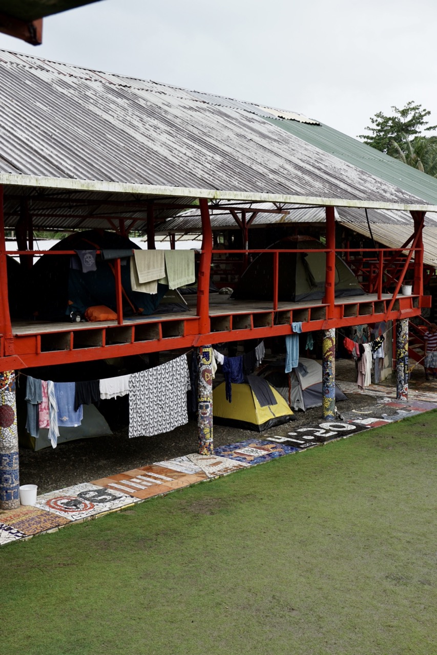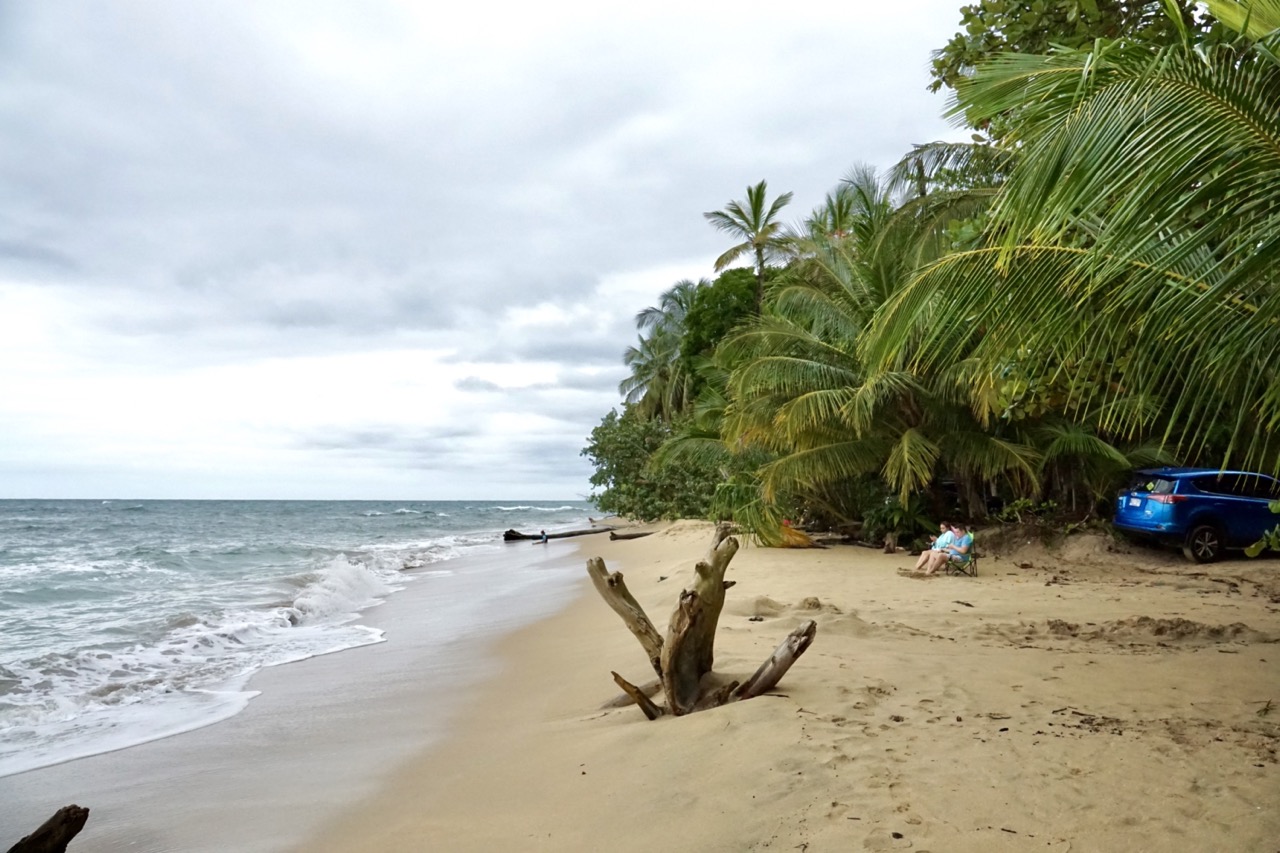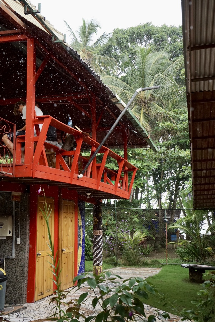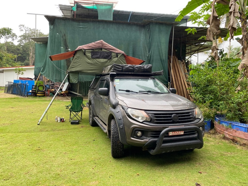 Da die Karibikküste aufgrund der Armut der hier lebenden Bevölkerung ein bisschen gefährlicher ist, als viele Teile der Westküste, empfiehlt es sich, auf abgeschlossenen, offiziellen Stellplätzen zu übernachten. Wir konnten unser Auto auf einer Wiese eines Hostels parken und kaum war der Motor ausgestellt, setzte der Tropenregen ein. Um ehrlich zu sein, kam in uns schon die Frage auf, ob sich der Weg hierher wirklich gelohnt hat. Wir wussten zwar, dass es hier oft sehr nass sein kann, dass wir jedoch zur regenreichsten Zeit hierherfahren, hatten wir in unserer Planung irgendwie übersehen. Glücklicherweise hielt unser Dachzelt dicht und so verbrachten wir trotz des Regens eine trockene Nacht.