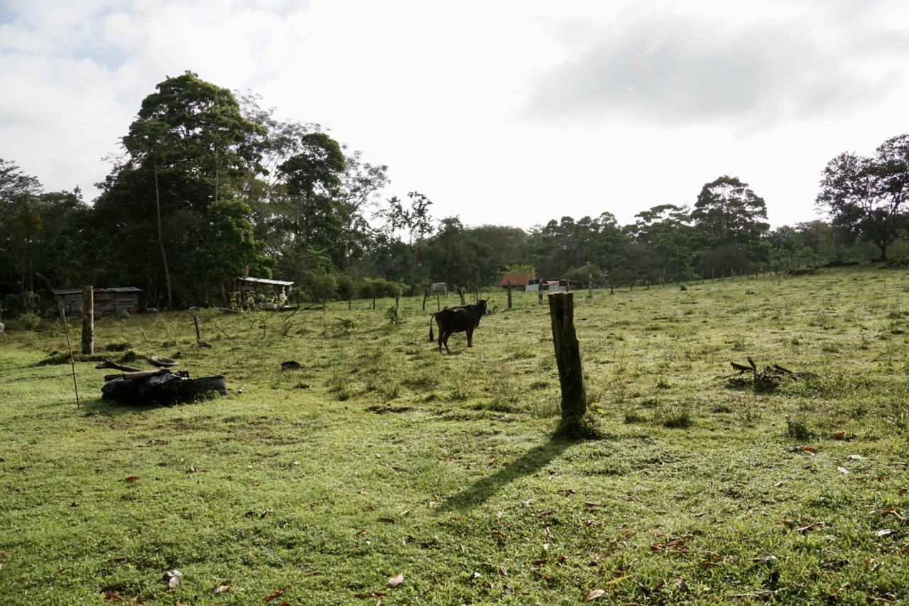 Mittlerweile war es später Nachmittag und wir machten uns auf, einen Schlafplatz zu finden. Unser erster Versuch, ein Wildcampingspot, war leider nicht erfolgreich. Zu viel Müll, zu wenig Platz und zu nass. Also weiter zu einem Campingplatz. Als wir da ankamen, war jedoch kein Mensch weit und breit zu sehen. Lediglich eine Kuh graste gemütlich auf der Rasenfläche. Daher hieß es auch hier: umdrehen. Auf unserem Rückweg lief uns dann ein winkender Mann entgegen, der, wie sich rausstellte, der Besitzer des Campingplatzes, beziehungsweise der Weide, war. Auch wenn er nur Spanisch sprach, gab er sich größte Mühe uns sein hübsches Plätzchen zu zeigen. In einen Holzschuppen hatte er Dusche und Toilette gebaut und auf der großen Rasenfläche gab es genug Platz für unser Auto, sowie einen Unterschlupf mit Strom. Als Highlight führte hinter dem Platz noch ein Fluss entlang, welcher ähnlich eines Gebirgsflusses, milchig türkis gefärbt war. Rundum gesagt, hatten wir ein wirklich gemütliches Plätzchen zum Schlafen gefunden.