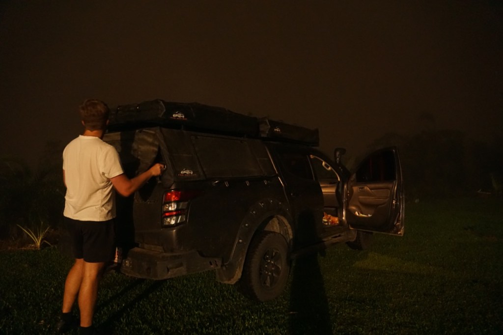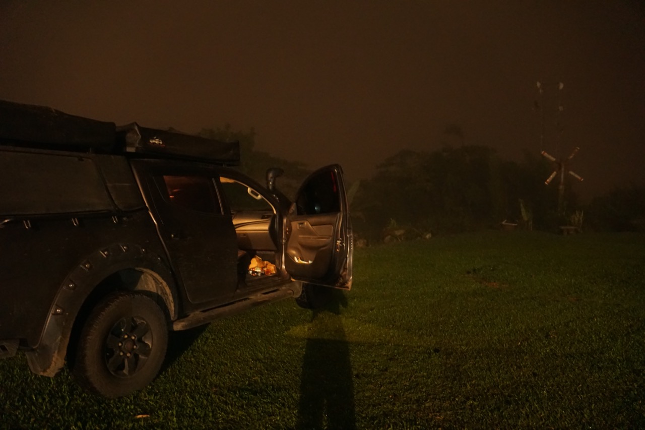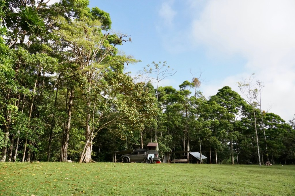 Leider hatten wir bei unserem ersten Campingplatz kein Glück. Mittlerweile war es knapp nach 17 Uhr und damit langsam dunkel. Der Campingplatz war verriegelt und verrammelt und bis auf einen kläffenden Hund war wohl niemand anwesend. Zum Glück hatten wir noch eine weitere Campingmöglichkeit und so nächtigten wir hoch oben in den Nebelbergen. Als wir gerade kochen wollten, begann dann auch wieder der Dauerregen und hörte auch die ganze Nacht nicht mehr auf. Wir träumten die Nacht vom Strand und blauen Himmel, der uns bald wieder erwarten würde.