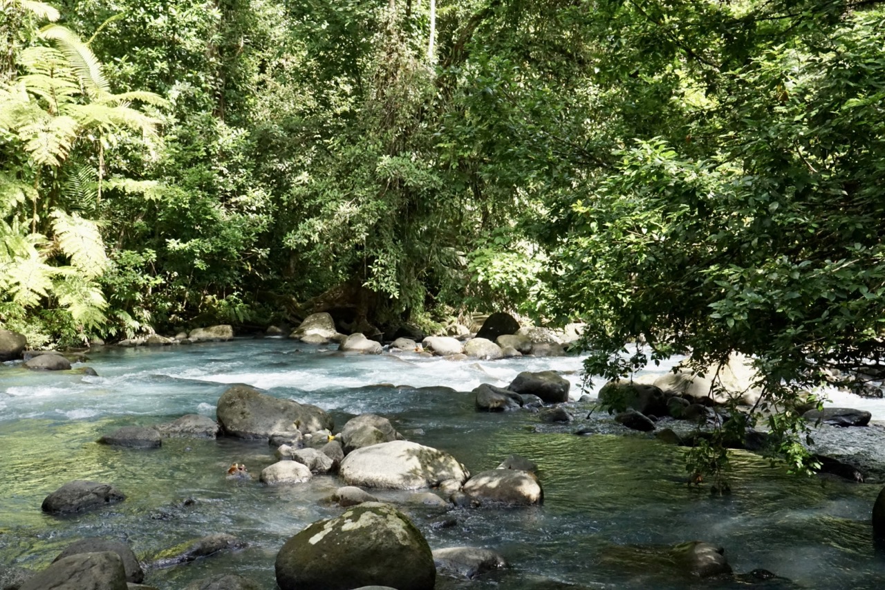 Unser Morgen begann mit einem erfrischenden Bad im kalten Fluss. Das sollte aber auch das spannendste Highlight des Tages werden. Wir hatten uns vorgenommen nach der Westküste, die Ostküste Costa Ricas zu erkunden. Der Weg dahin war dann alles andere als gemütlich. Fast die gesamten 333 Kilometer führten über eine einspurige Riesenbaustelle. LKW reihte sich hinter LKW, hinter Kleintransporter und dazwischen waren wir. Die Zeit schien einfach nicht zu vergehen, die Kilometer nicht weniger zu werden und die Laune ging immer weiter in den Keller. Nach ewigen Stunden Fahrt erreichten wir dann im Halbdunkeln unseren Schlafplatz.