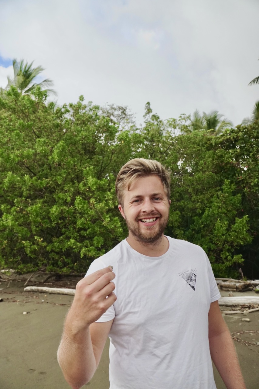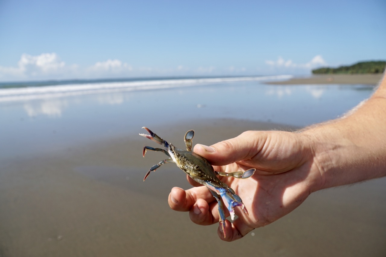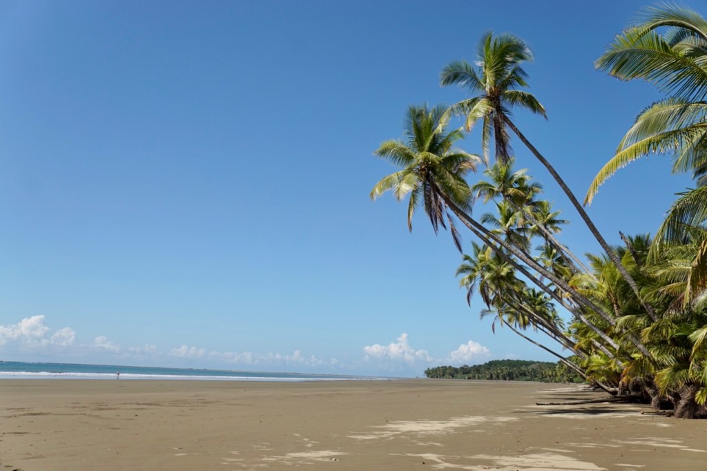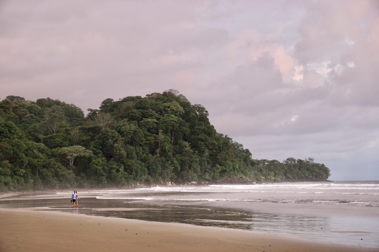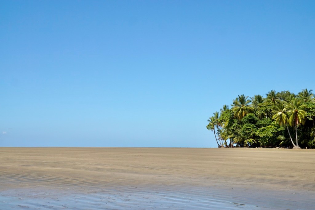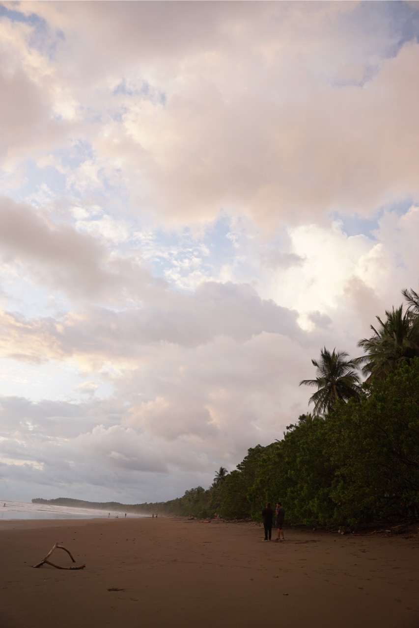 Hörbuch an, anschnallen und los geht die wilde Fahrt. Das Navi zeigte uns eine Fahrzeit von ungefähr fünf Stunden an und wir wussten aus der Erfahrung, dass man da meist noch etwas Zeit hinzuaddieren muss. Nach etwas mehr als vier Stunden Fahrt, über die kurvenreichen Bergstraßen Costa Ricas, freuten wir uns dann, als wir die ersten blauen Flecken am Himmel sahen und dann sogar kurz die Sonne. Dann kam das Meer wieder zum Vorschein und unsere Laune wurde schlagartig wieder so richtig gut. Wir erreichten schließlich unseren Schlafplatz. Ein kleiner gemütlicher Campingplatz, wo wir die kommenden zwei Nächte verbringen wollen. Nachdem wir uns ausgebreitet haben, ging es erstmal den nahegelegenen Strand erkunden.