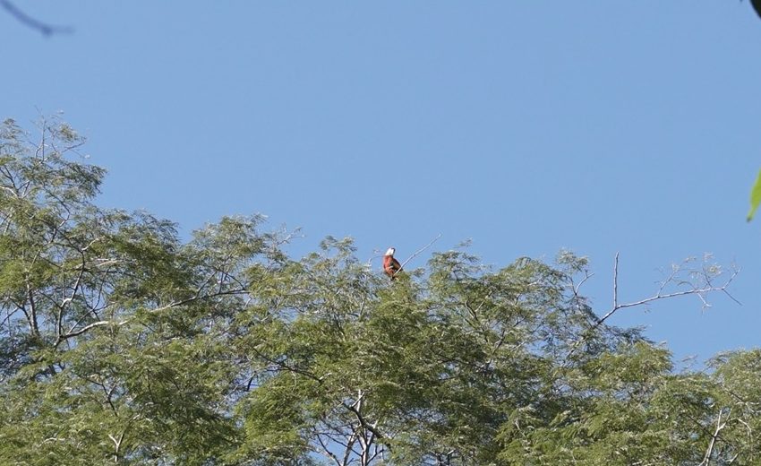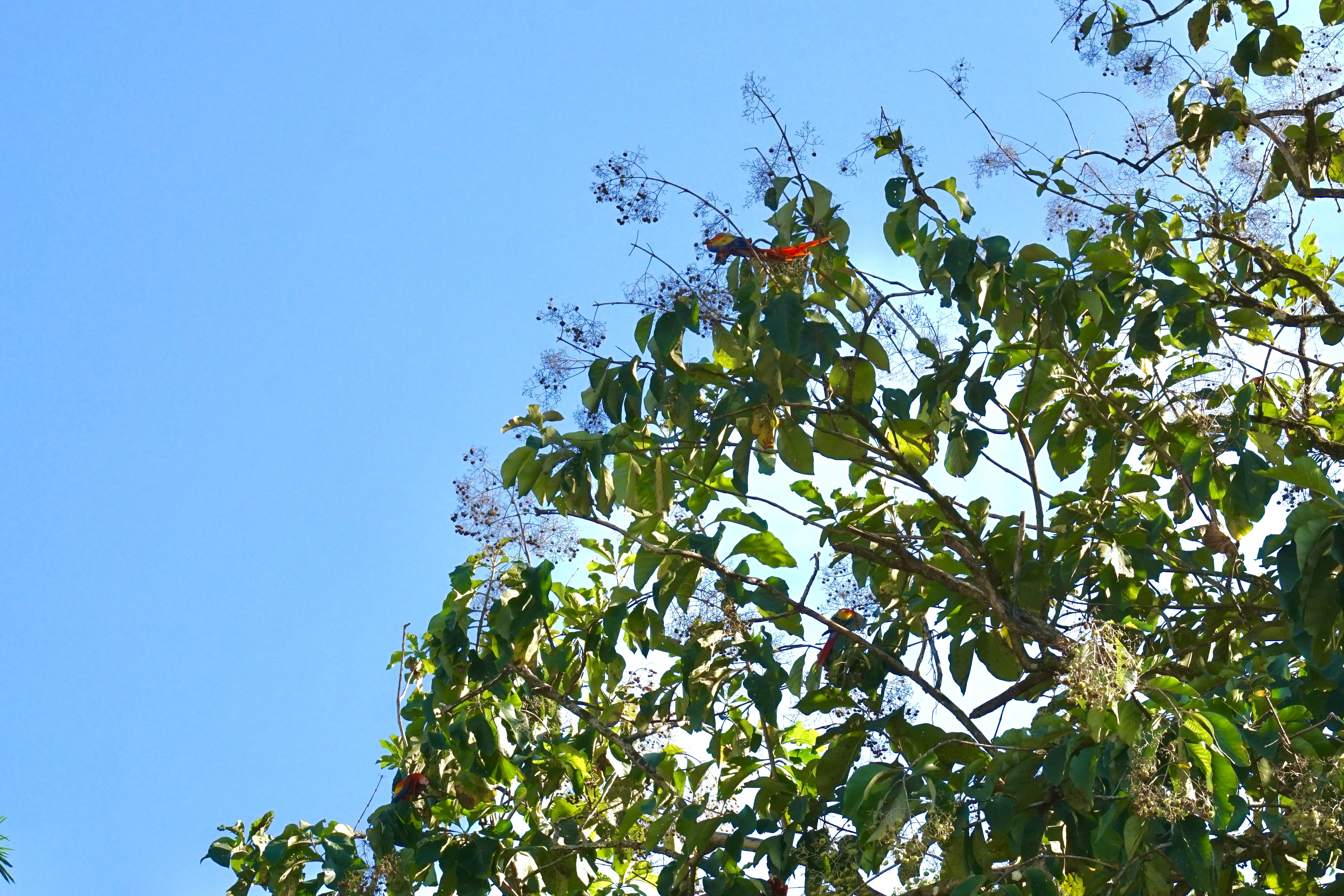 Früh waren wir wieder wach, nicht wegen der Aufregung, dass es endlich Heiligabend werden würde, sondern schlichtweg, weil der erste von uns (Hendrik) inzwischen spätesten gegen 6 Uhr wach ist. Nach einem kleinen Rührei-Frühstück wurde erstmal mit Teilen der Verwandtschaft in Deutschland telefoniert. In Deutschland war es schon später Nachmittag, hier begann gerade erst der Tag. Kurz bevor wir telefonierten, entdeckten wir dann noch in einem Baum, hoch oben in der Krone, einen wunderschönen Papagei. Es war ein hellroter Ara oder auch Scharlachara genannt. Für die Kamera leider zu weit weg, um ein wirklich schönes Foto zu schießen, mit dem Fernglas allerdings wunderbar zu erkennen. Wir waren sehr begeistert von diesem wunderschönen Tier.