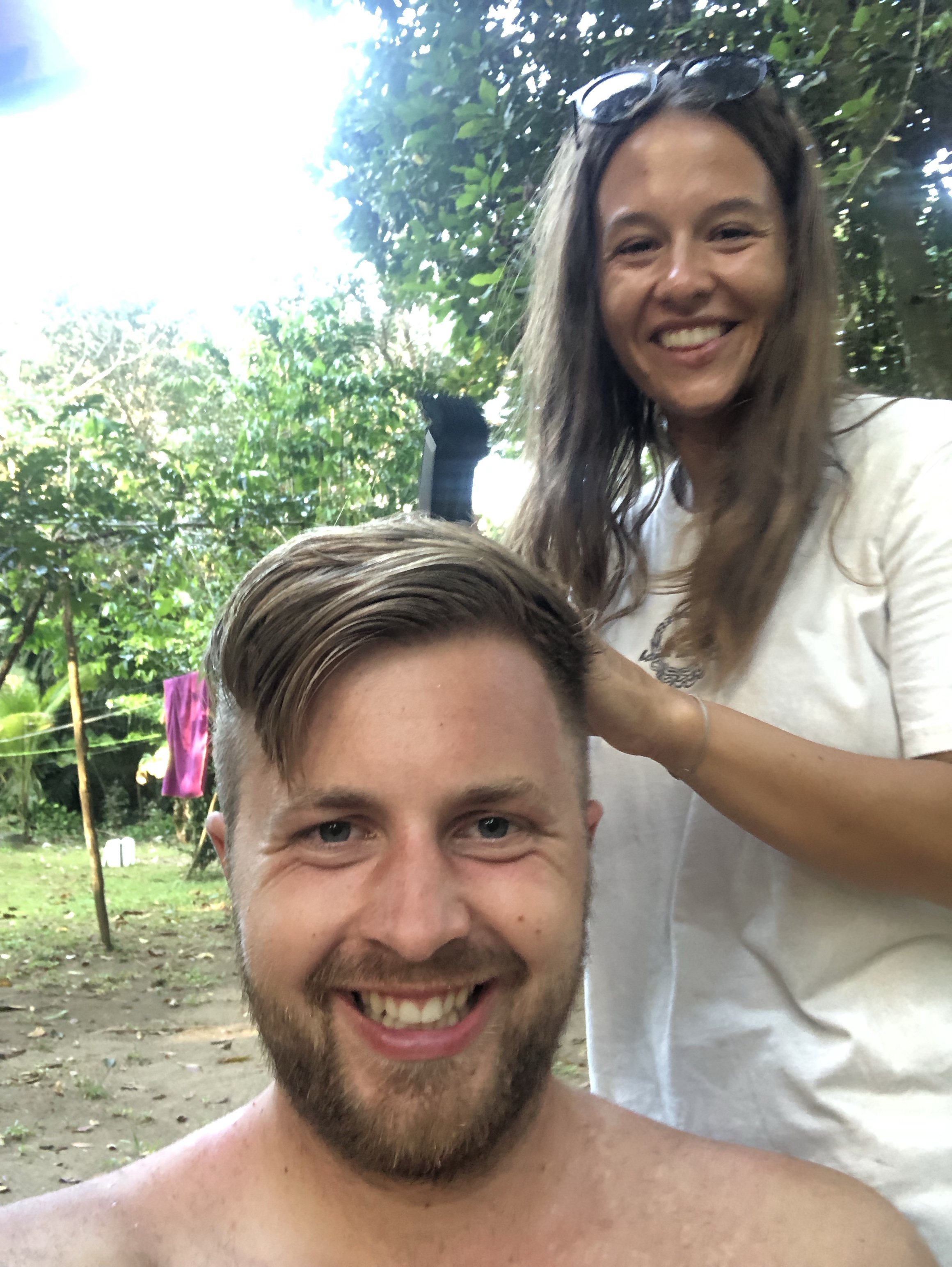 Wir sind auf jeden Fall ganz begeistert von diesen wunderschönen Tieren. Diese Farbenpracht und Größe der Tiere sind einfach phänomenal. Somit konnten wir wieder ein Tier von unserer Liste streichen, wobei wir ehrlicherweise auf noch einige Begegnungen mit den schönen Tieren hoffen. Solch saftige Farben sind wirklich einmalig. Als wir wieder beim Campingplatz waren und wir wieder Internet hatten, wurde nochmal mit den Familien telefoniert. Wir freuten uns außerdem über den Schatten, um etwas herunterzukühlen. Annelie spielte dann noch Friseur und schnitt Hendrik die Haare. Gegen halb fünf machten wir uns dann nochmal auf den Weg zum Strand.