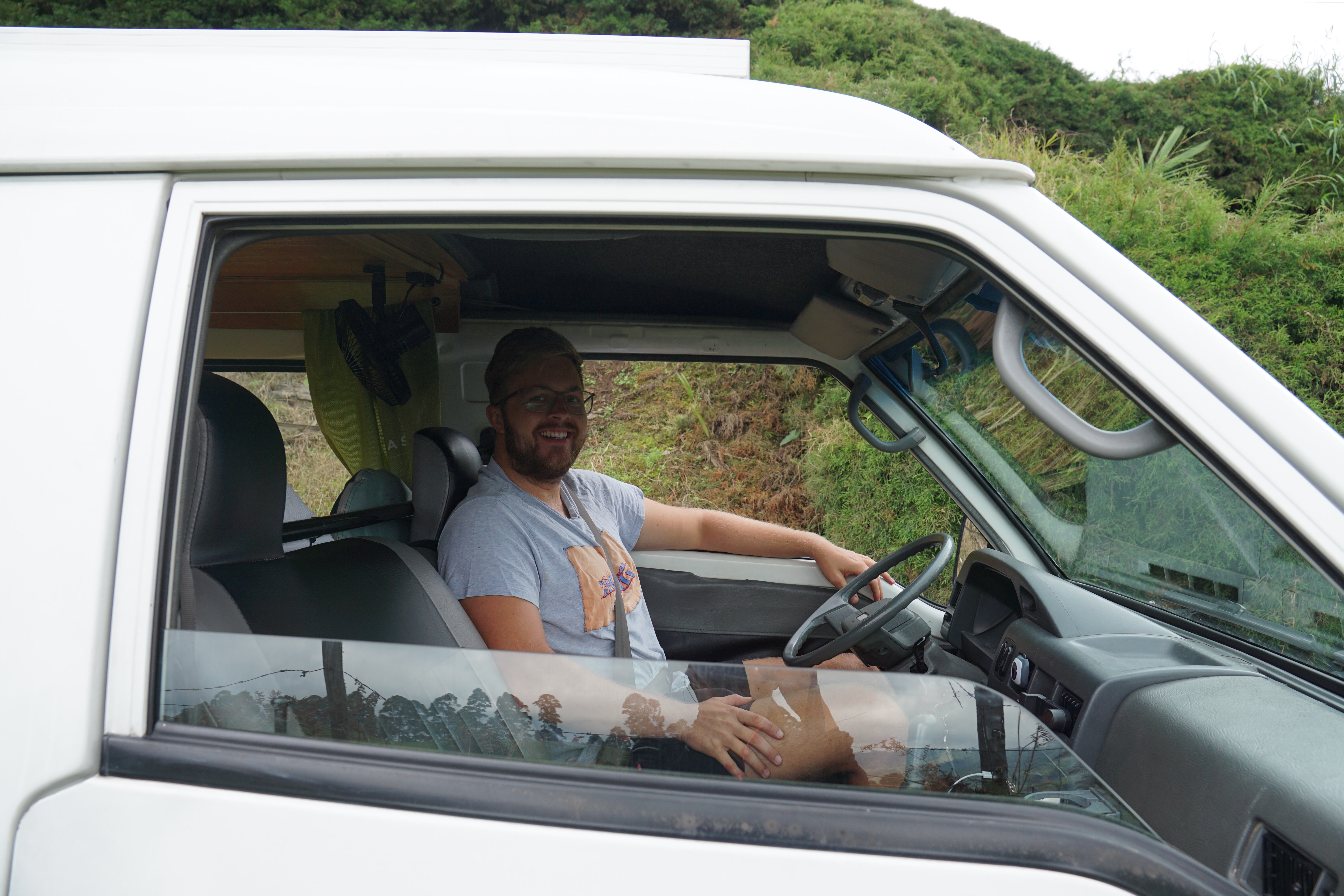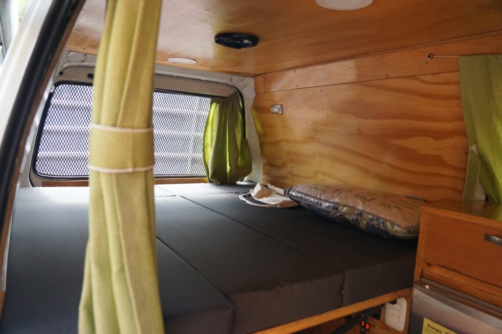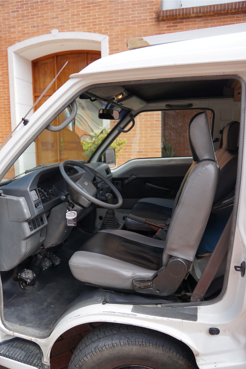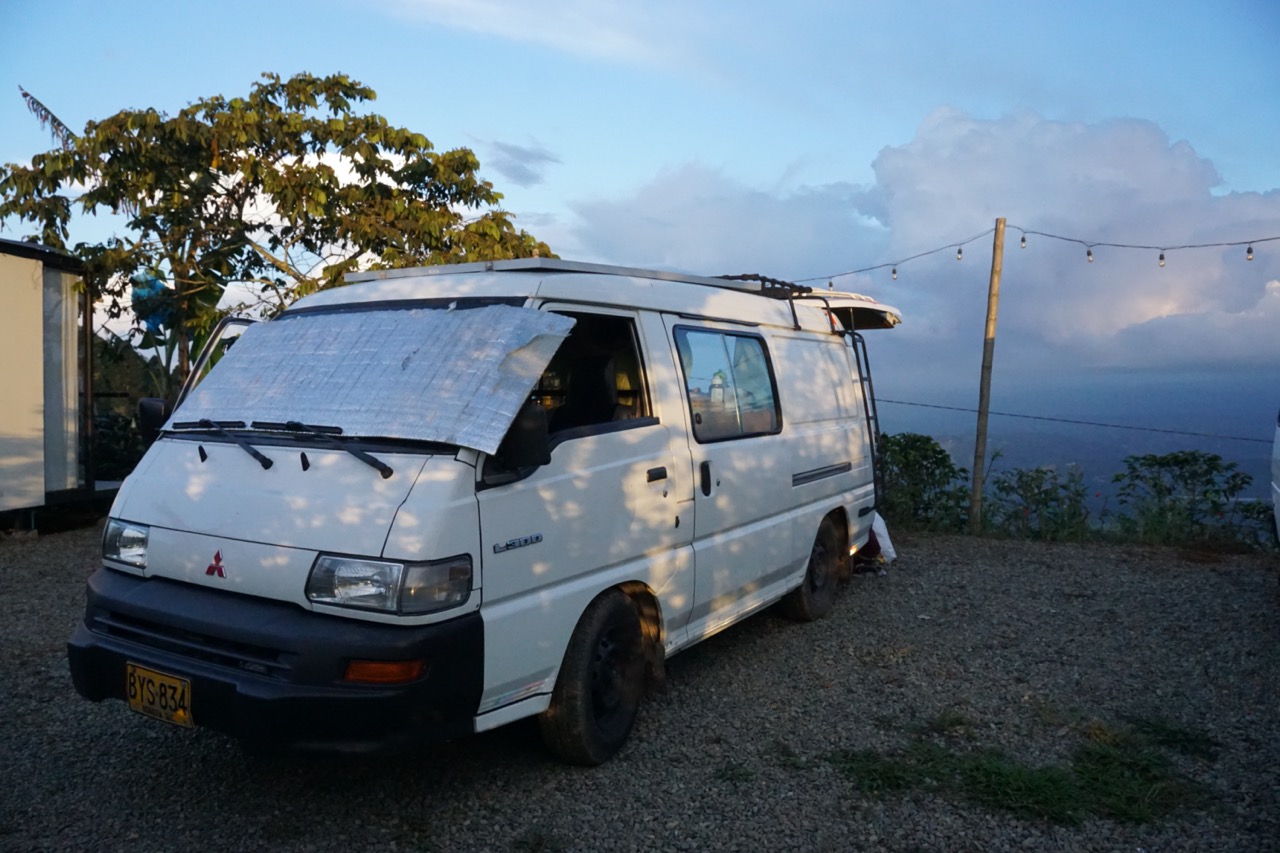Wir waren erstmal etwas überrascht von dem Auto. Es ist gleichzeitig genau das, was wir wollten und auch grundsätzlich, was wir uns vorgestellt haben und dennoch sah es etwas moderner aus. Unser Auto ist ein, von dem Unternehmen „Chivitas“ umgebauter Chiva-Van. Chivas sind traditionelle kolumbianische „Leiter-Busse“, welche seit Jahrzehnten durch die Dörfer und durchs Land fahren und die auf dem Dach diverse Güter transportieren. Grundsätzlich ist unser Chiva-Van ungefähr von der Größe und generell einem der älteren VW-Busse sehr ähnlich. Auch wenn das Cockpit sehr interessant und altmodisch aussieht, lässt sich der generelle Umbau durchaus sehen. Der Van hat ein Solarpanel auf dem Dach, welches eine Batterie lädt, die dann einen Kühlschrank betreibt, sowohl USB-Ports, als auch richtige Steckdosen mit Strom versorgt und auch die Lichter im Bus leuchten lässt. Zusätzlich gibt es einen Wassertank, der das eingebaute Waschbecken mit Wasser versorgt, einen Gasherd mit eingebauter großer Gaskartusche. Dadurch können wir auf die kleinen Camping-Gaskartuschen verzichten, die wir bisher immer nutzen mussten. Sowie ein Bett, welches sich auch zu einer Sitzecke mit Tisch umbauen lässt.