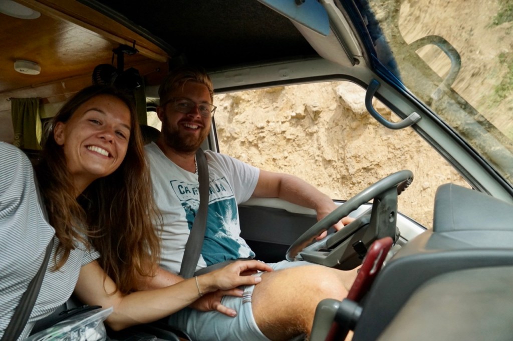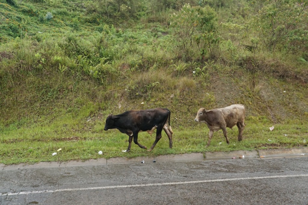 Der Regen der Nacht, hatte die Straßen noch ein Stück weiter ausgewaschen, wodurch unser Weg nach unten mit einiger Aufregung und vielen Huckeln verbunden war. Vor allem, als uns ein LKW auf dem bereits schon sehr schmalen Weg entgegenkam, wurden Hendriks Fahrtkünste ein wenig unter Probe gestellt. Wir quetschten uns halb auf der Straße, halb im Graben stehend vorbei und hatten es dann bald auf die große Hauptstraße geschafft. Die weitere Fahrt blieb aufregend. Es ging weiter durch niemals endende Baustellen im Schneckentempo und irgendwann in die Berge. Die Autos und Trucks schlängelten sich die schmalen Bergstraßen empor und wir waren recht überrascht von der Kraft unseres Chivitas.