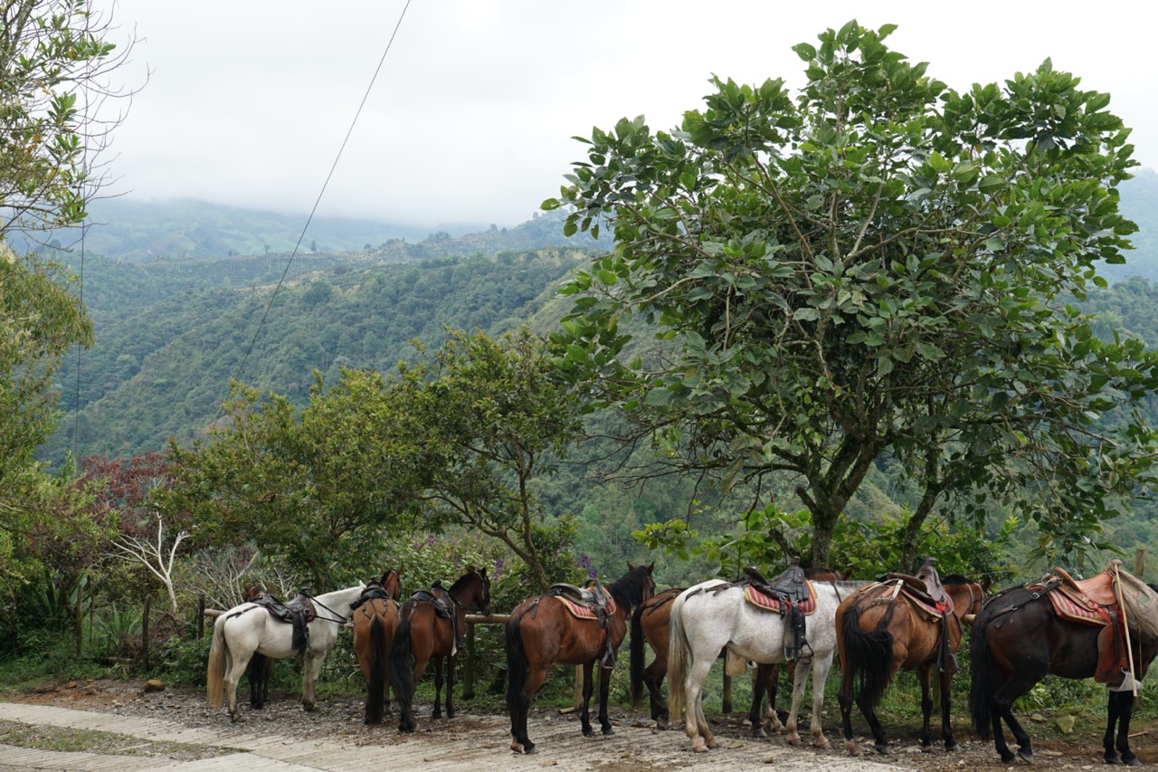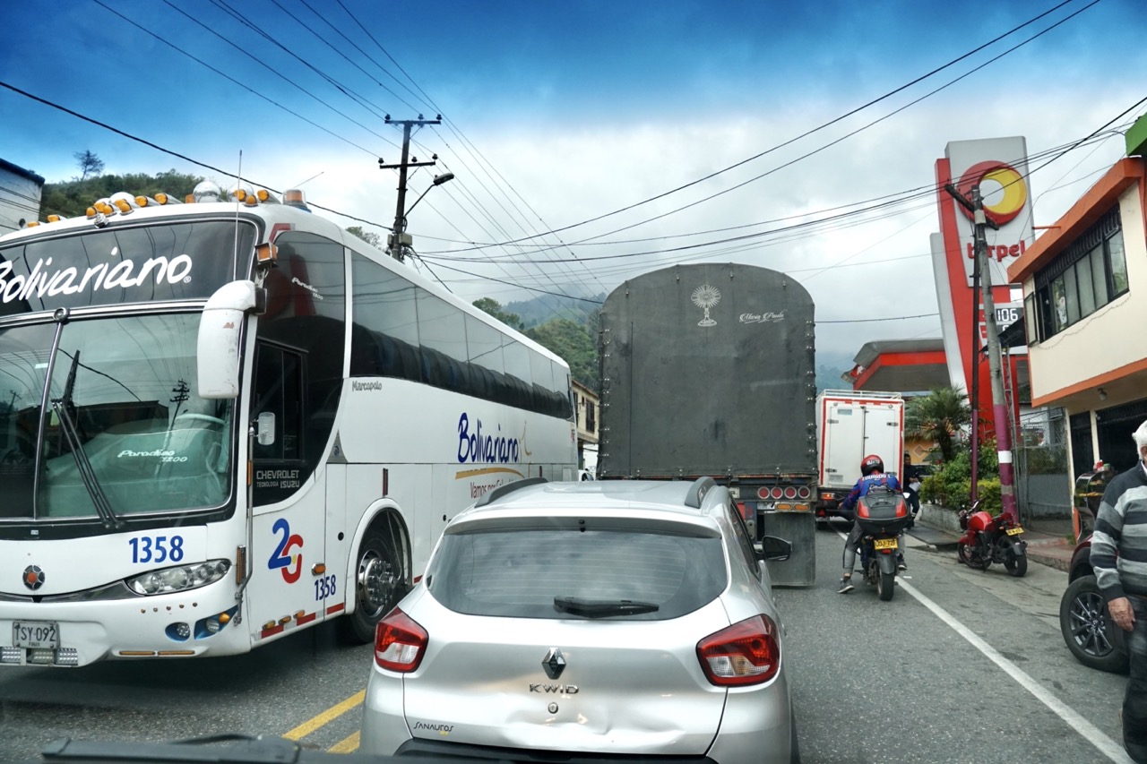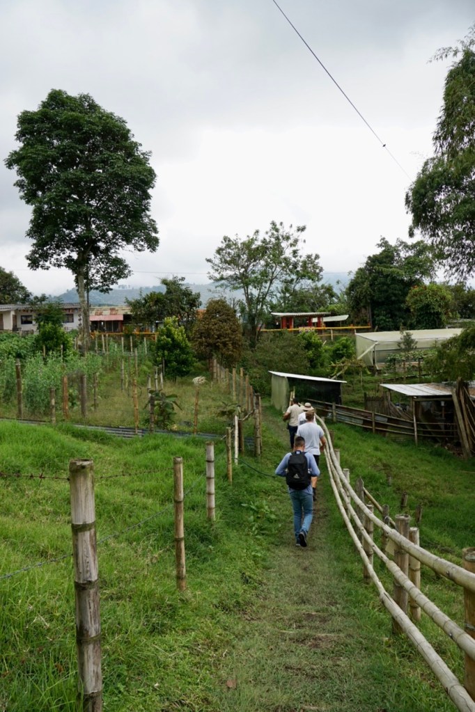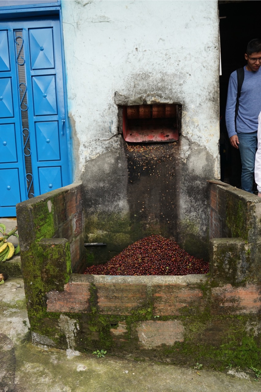 In dieser Nacht hatten wir uns aus Stühlen und Rucksäcken eine Bettverlängerung gebaut, wodurch wir schon ein wenig besser schlafen konnten, als in der letzten Nacht. Durch den vielen Regen war die Wiese, auf der wir standen, komplett aufgeweicht. Beim Ausparken fuhren wir uns erst mal fest. Zum Glück eilte uns der Fincabesitzer direkt zur Hilfe und gemeinsam schoben wir unseren Van aus dem Matsch. Merke für Annelie: bei so einer Aktion keine weißen Stoffschuhe anziehen.. Spätestens jetzt haben wir gelernt, dass Gelände- und Matschfahrten mit unserem Gefährt wirklich nicht möglich sind. Eigentlich war unser Plan, eine Fahrradtour durch das Cocora Tal zu machen. Da wir online bisher keine Antwort von dem Veranstalter bekommen hatten, fuhren wir mit dem Auto in den Ort Salento zum Büro des Tourenanbieters. Dieses war, wie zu erwarten, geschlossen. Durch super enge Straßen, voller Menschen und Autos schlängelten wir uns zu einem anderen Tourenanbieter. Dieser erklärte uns jedoch, dass wir uns einen Tag vorher hätten Anmelden müssen. Fahrradfahren wird also heute nichts. Nach ein wenig überlegen entschlossen wir uns dazu, dann wenigstens eine Kaffeetour zu machen. Schließlich sind wir ja extra in das sogenannte Kaffeedreieck gefahren.