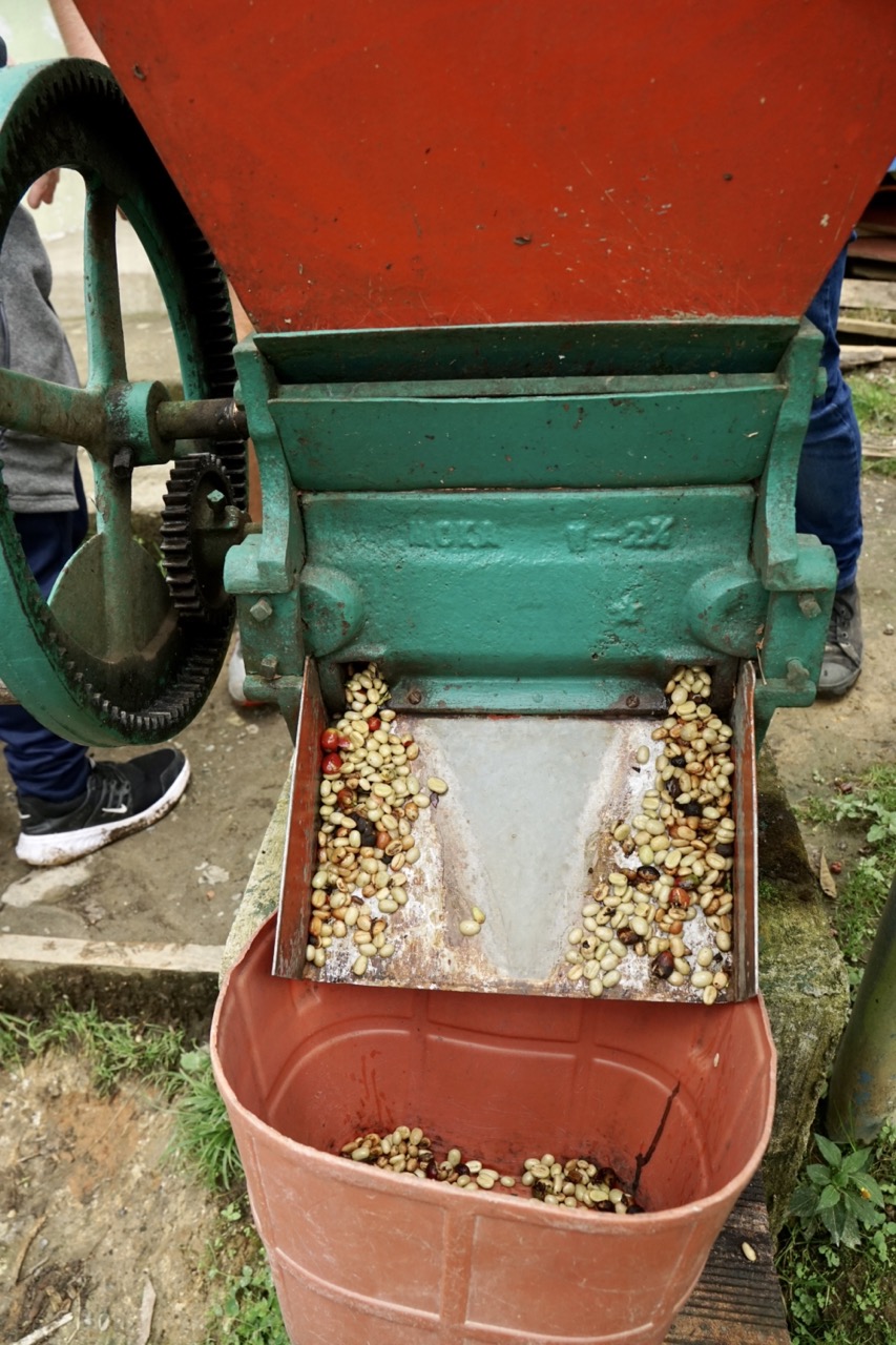 Die ganze Region ist von grünen, saftigen Hügeln überzogen, auf welchen Arabica-Kaffee angebaut wird. Dieser wird von hier in die ganze Welt exportiert. Es ist also gut möglich, dass auch ihr gerade zu Hause eine Tasse Kaffee trinkt, deren Bohnen von hier stammen. Eigentlich hatten wir im Internet eine Finca rausgesucht, bei welcher wir so eine Tour machen wollten. Auf dem Weg dahin sahen wir jedoch eine andere Kaffeefarm und hielten kurzerhand hier an. Wir konnten sofort bei der nächsten Tour dabei sein. Wir lernten, wie Kaffee angebaut wird, wann er geerntet wird und wie er verarbeitet wird. Wusstet ihr beispielsweise, dass die Kaffeearomen von der Höhe der Anbauregion abhängig sind? Kaffee aus höheren Regionen weist ein komplexeres Aromenprofil aus und gilt daher allgemein als hochwertiger.