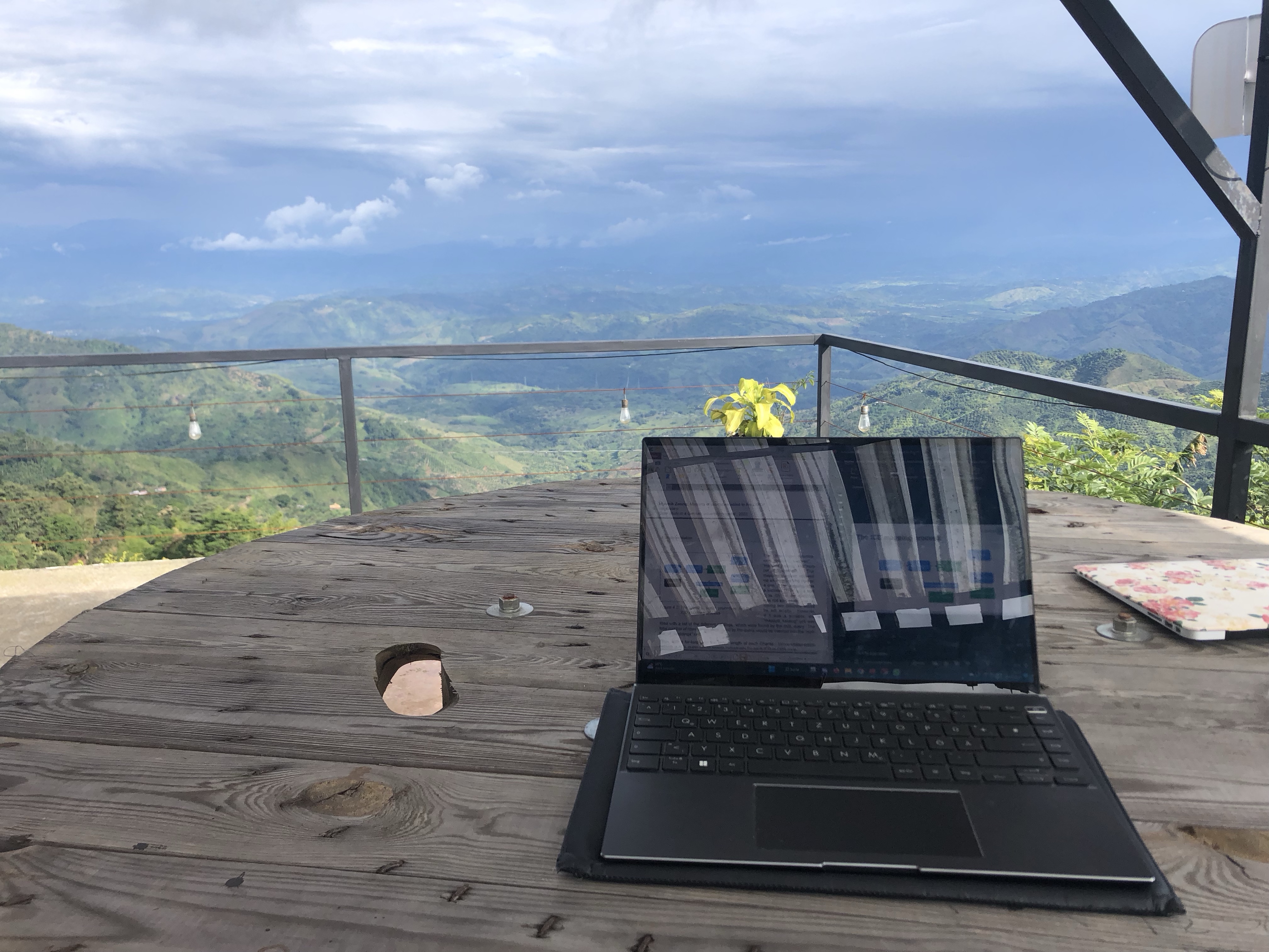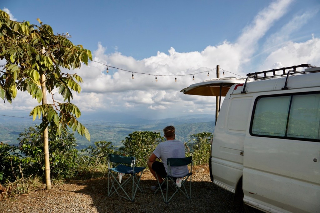 An diesem Wochenende konnten wir wohl in einem der schönsten Büros der Welt arbeiten. Mit einem grandiosen Blick über die Berge und angenehmen Temperaturen vergeht so ein Arbeitstag gleich viel schneller. Hendrik konnte fleißig an seiner Verteidigung für die Bachelorarbeit arbeiten und Annelie die Reise weiter planen. Da Camping und Roadtrips in Kolumbien noch nicht so verbreitet sind, gestaltet sich die Planung ein wenig schwieriger als bspw. in Kanada oder Costa Rica. Vor allem Übernachtungsmöglichkeiten auf langen Strecken sind rar. Gleichzeitig gibt es in diesem Land so viel zu sehen, dass es schwerfällt zu entscheiden in welche Regionen man fahren möchte. Alle können wir in diesen 5 Wochen einfach nicht sehen und so müssen wir einige Abstriche machen, die wir uns dann für die nächste Reise aufheben werden.