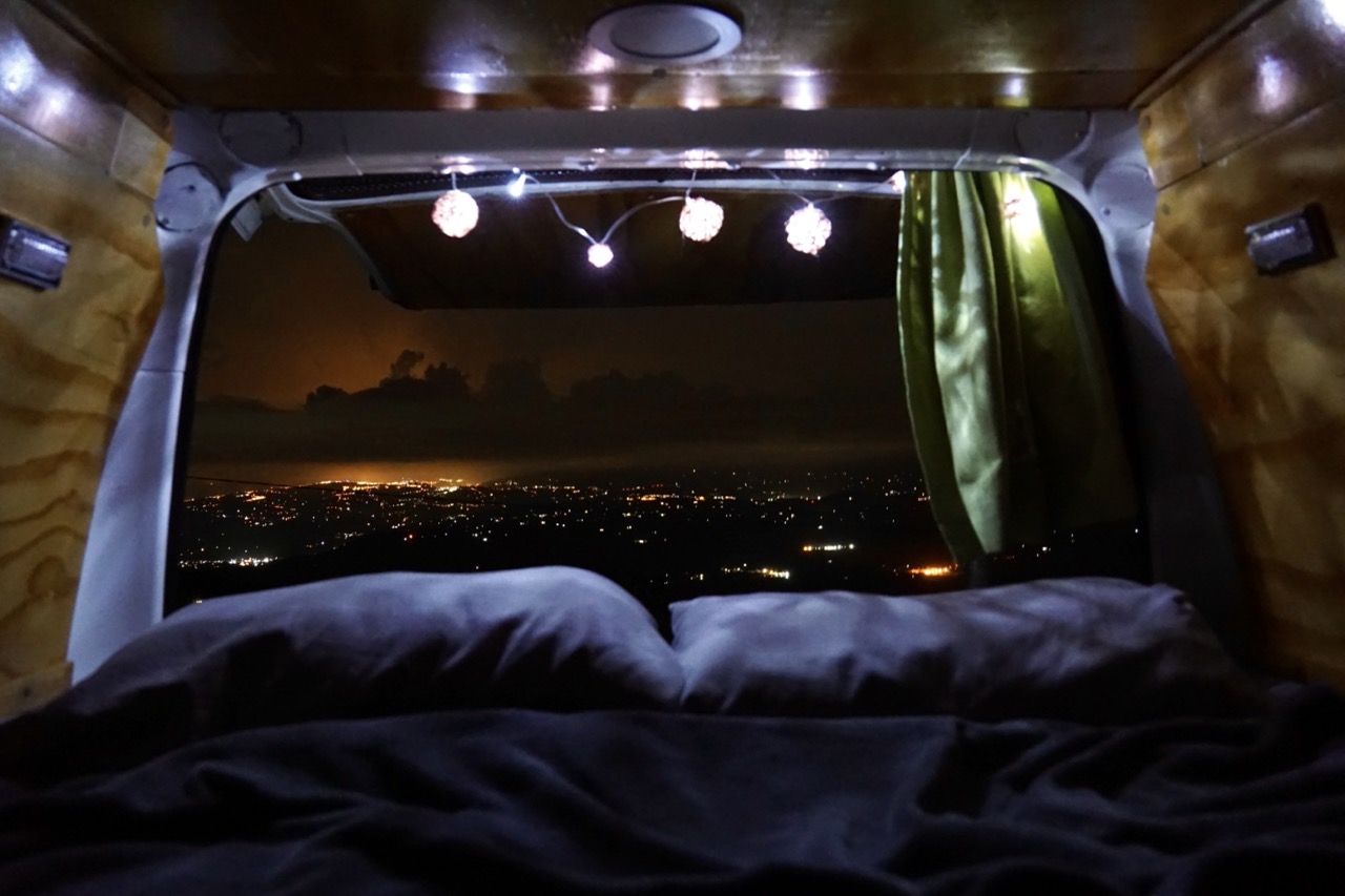 Irgendwann bogen wir von der Hauptstraße ab und folgten einer Bergstraße bis ganz nach oben. An unserem Campingplatz angekommen, begrüßte uns Pablo, der Inhaber der Autovermietung. Er hat hier oben einen sehr hübschen Co-Working und Co-Living Space für sich und seine Freunde und Mitarbeiter/innen eingerichtet. Man hat fast einen 360° Blick auf die umliegenden Gemeinden, Städte und Berge. Bei gutem Wetter kann man sogar die drei aktiven Vulkane der Region sehen. Meist sind diese jedoch von Wolken verhangen.