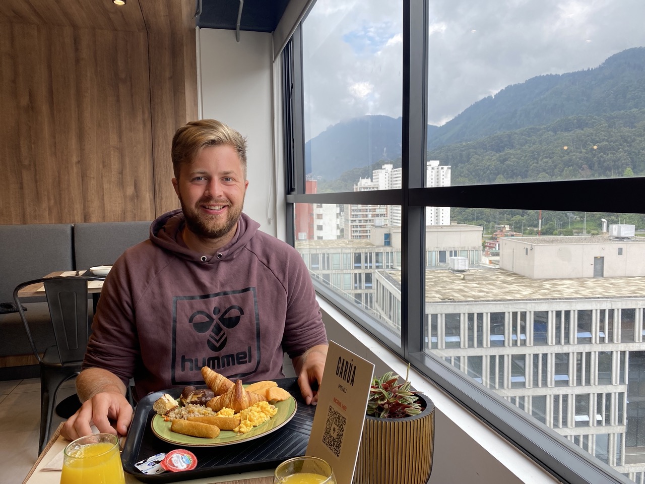 Wir entschieden uns für das Frühstück der Unterkunft (6€ p.P.) und erfreuten uns an frischen Früchten, Croissants, Rührei und anderen Leckereien. Das Ganze im 17ten Stock und mit Blick auf den Berg Montserrate, welchen wir am Vortag besucht haben. Im Anschluss packten wir unsere Sachen und checkten aus. Wir ließen unsere Rucksäcke im Luggage-Raum und blieben zunächst in einer gemütlichen Ecke der Lobby. Wir nutzten die Zeit, das vorhandene Internet und den Strom für die weitere Planung, sowie fürs Arbeiten, für die Uni und um mit der Heimat zu telefonieren. Eigentlich war unser Plan noch etwas Bogotá zu erkunden und unter anderem in eines der Museen zu gehen, doch die Zeit verging ziemlich schnell. Wir wollten uns am Nachmittag mit einem Freund von Hendrik treffen und die kommenden zwei Nächte bei ihm schlafen. Den Freund, Rodrigo, kennt er noch von seinem Auslandsjahr in Kanada. Allerdings war er noch außerhalb von Bogotá, da er, wie viele andere, Silvester außerhalb der großen Stadt verbracht hat.